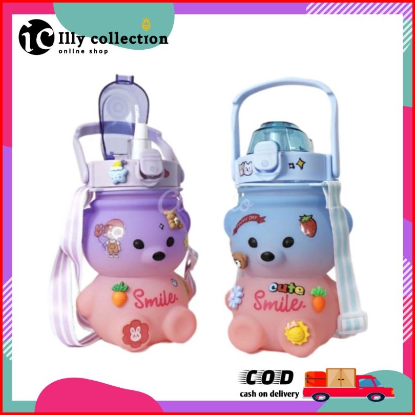 Botol Minum Bear Smile Gradasi 1 4 Liter Bentuk Beruang Dengan Stiker 2d 3d