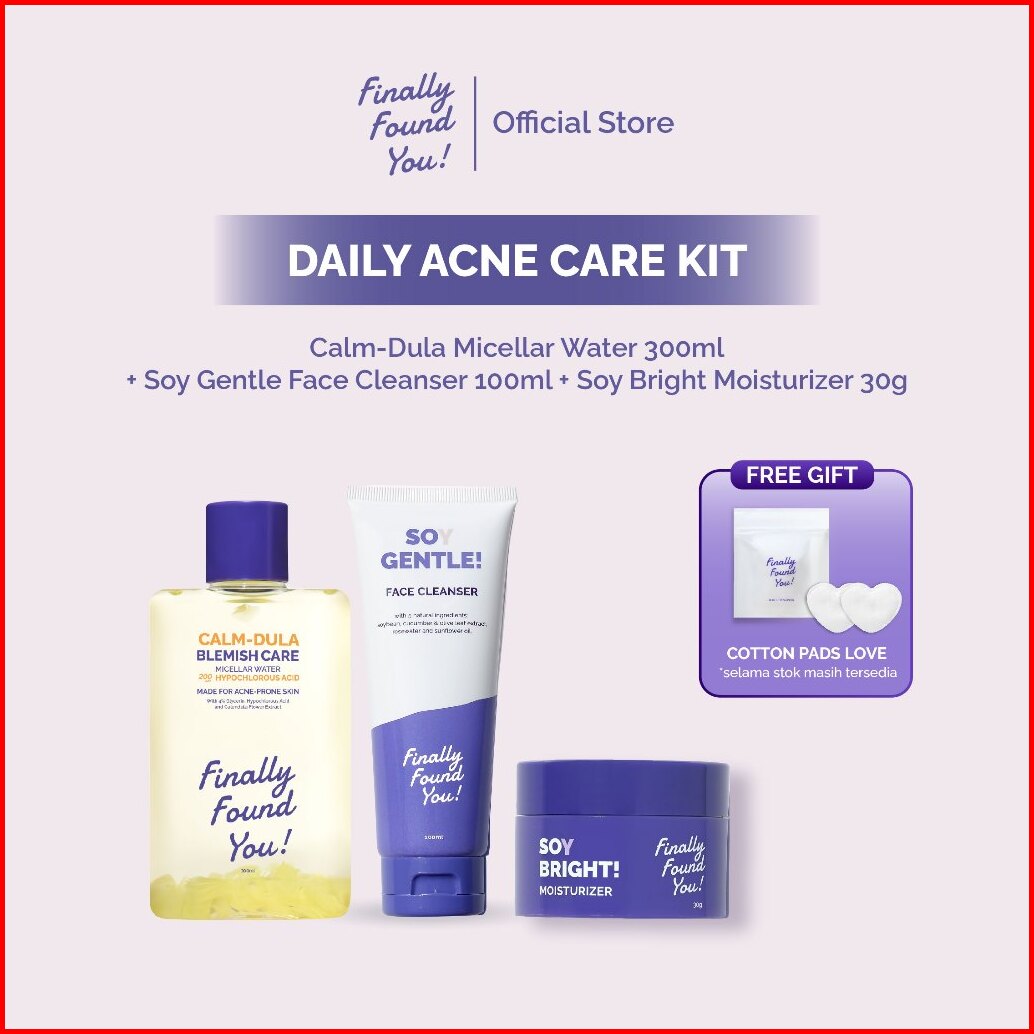 Finally Found You Daily Acne Care Kit Calm-dula Hocl Micellar Water 300ml Soy Gentle Face Cleanser 100ml Soy Bright Mois