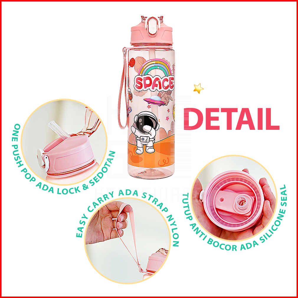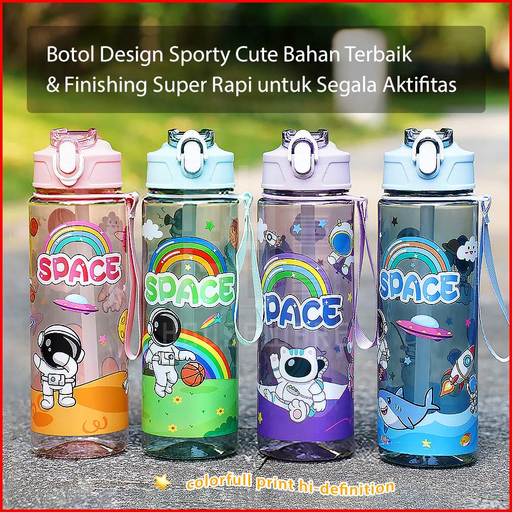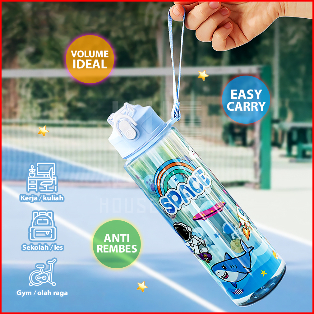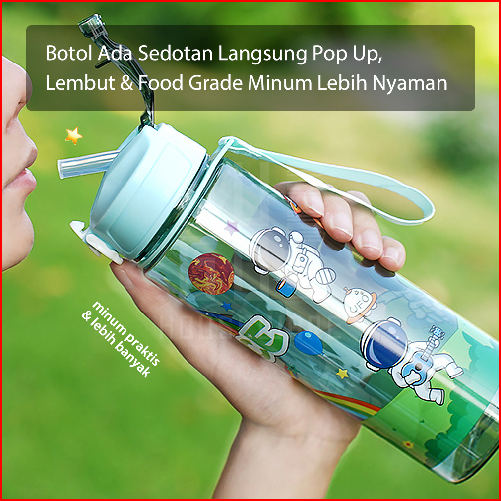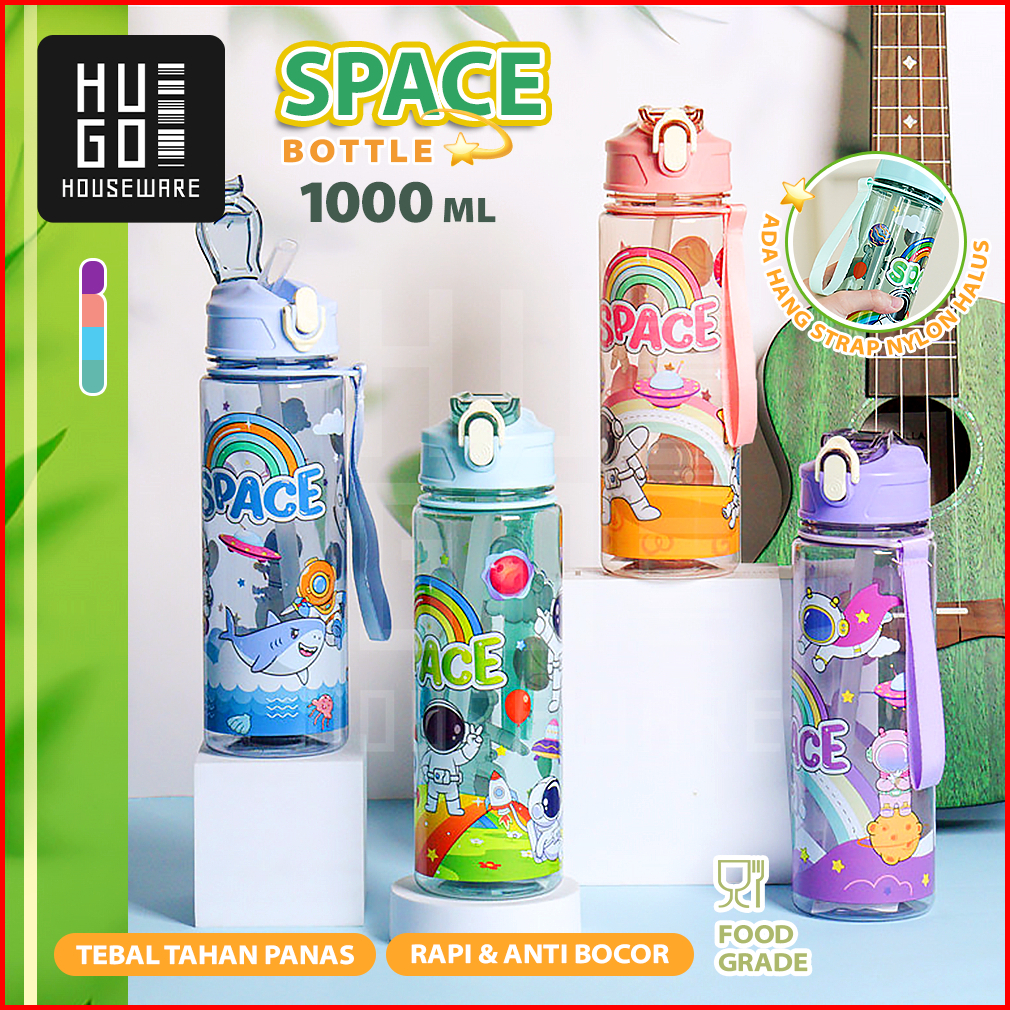 Hugo Botol Minum 1 Liter Bening Botol Air Anak Space Sedotan Anti Bocor Premium Bpa Free