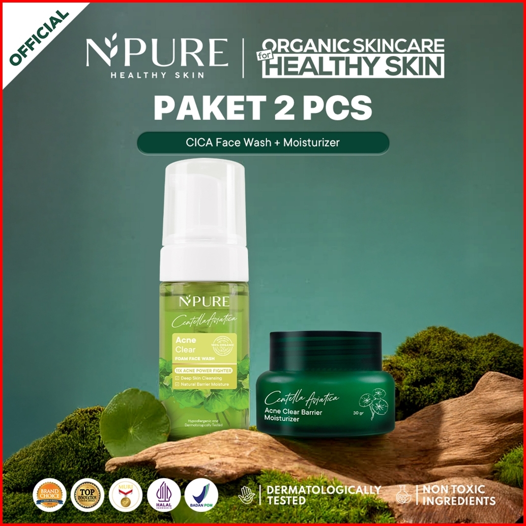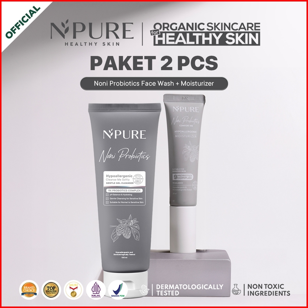 2 Pcs - Npure Bundle Facial Wash Moisturizer Full Size Paket Kecantikan Rangkaian Skincare Brightening Skin Acne Skin