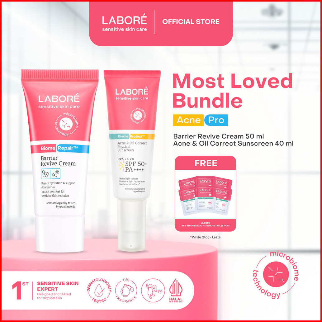 Labor Dermalab Revolutionaire Most Loved Bundle Acne Pro Edition - Barrier Revive Cream Labore Acne Sunscreen Hijau Mois