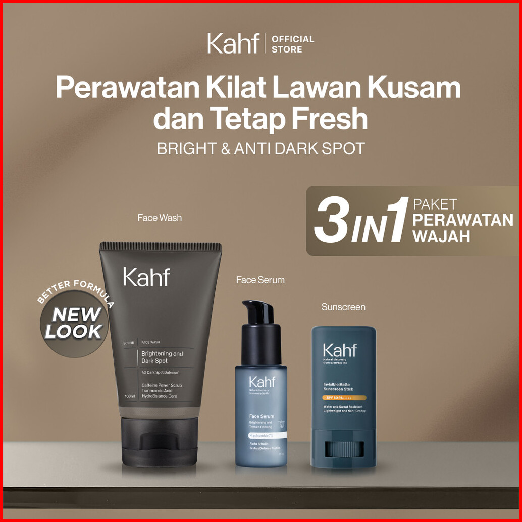 Kahf Bundle 3in1 Paket Perawatan Wajah Paket Perawatan Kilat Lawan Kusam Tetap Fresh Face Wash Serum Sunscreen Stick - S