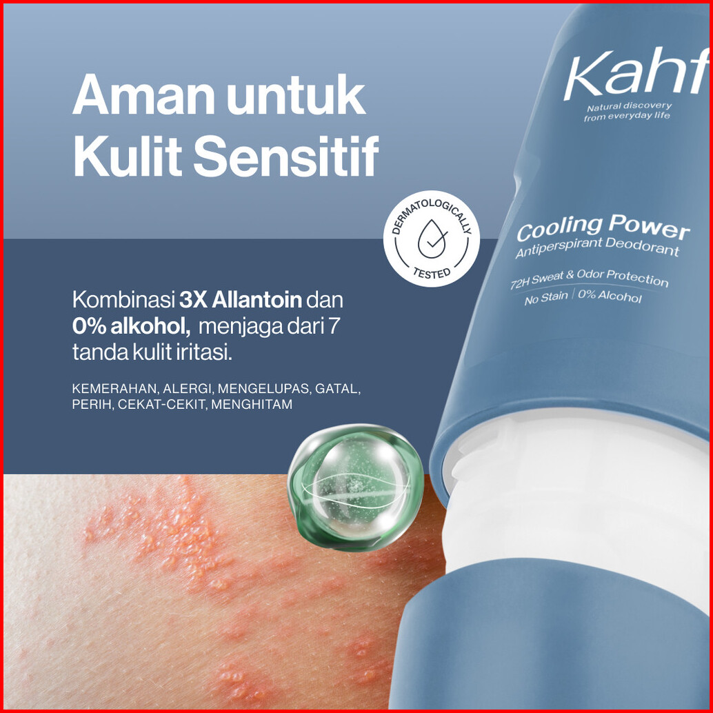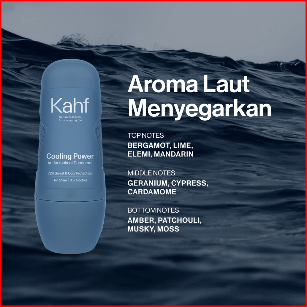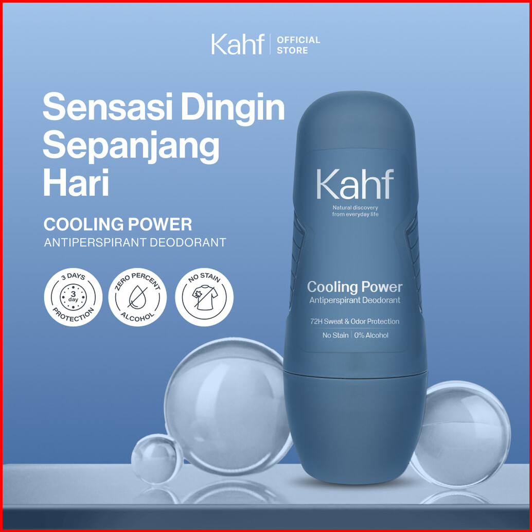 Kahf Cooling Power Antiperspirant Deodorant Roll On 45 Ml - Freshness All Day 0 Alcohol Easy Application - Deodoran Pria