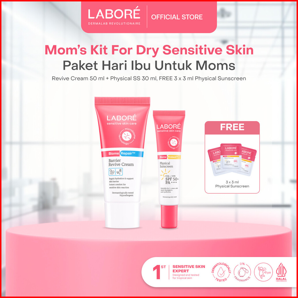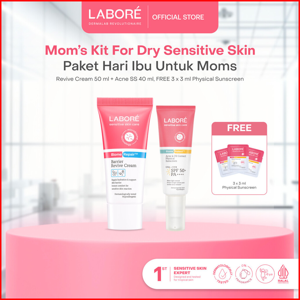 Labore Moms Kit For Dry Sensitive Skin-paket Hari Ibu Untuk Moms Barrier Revive Cream 50 Ml-physical Sunscreen 30ml-acne
