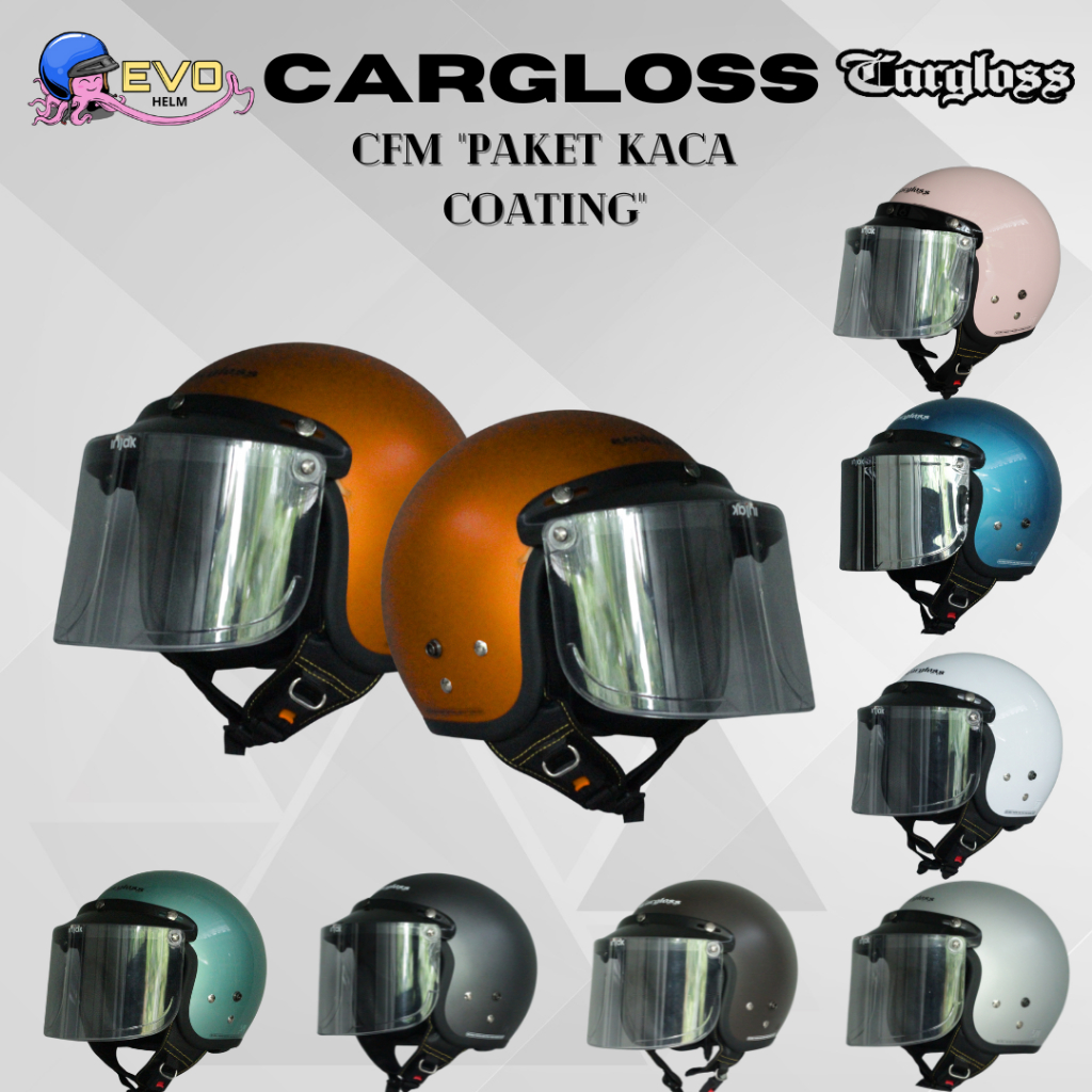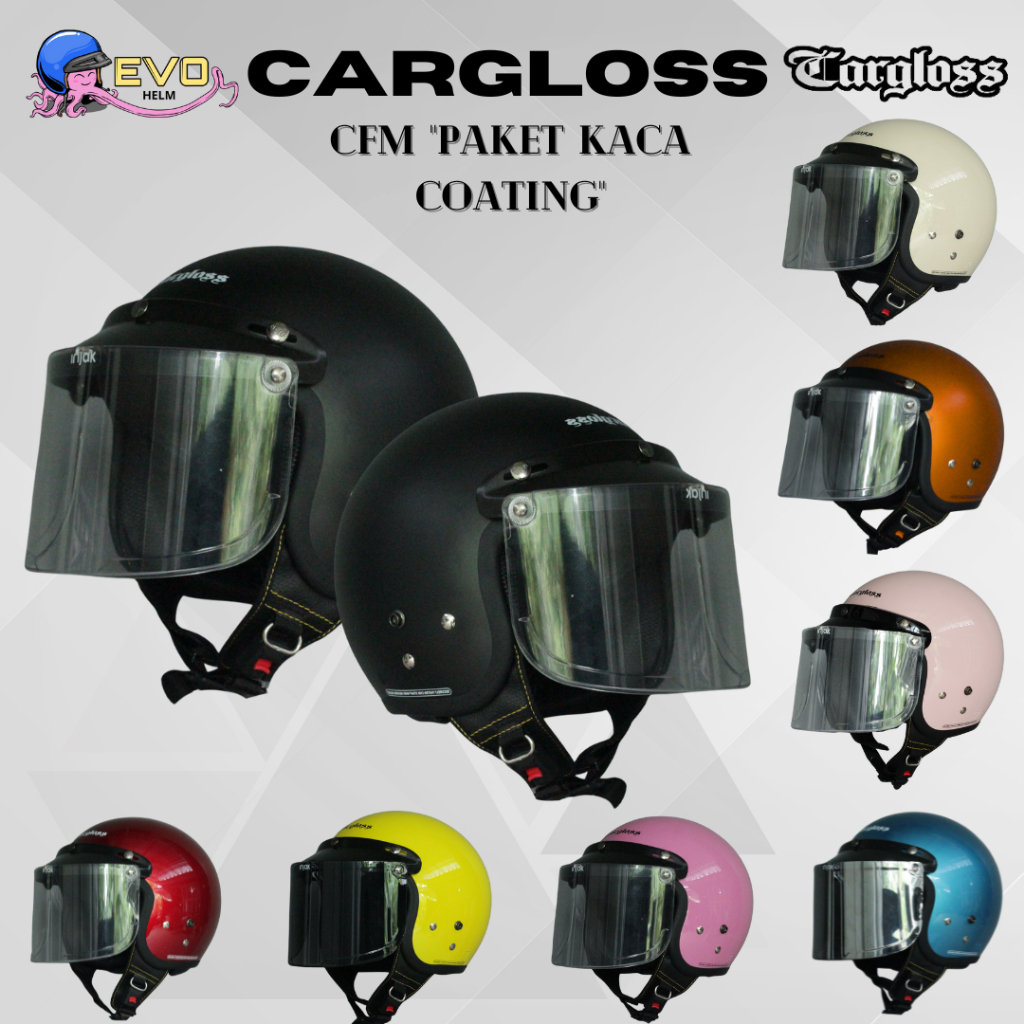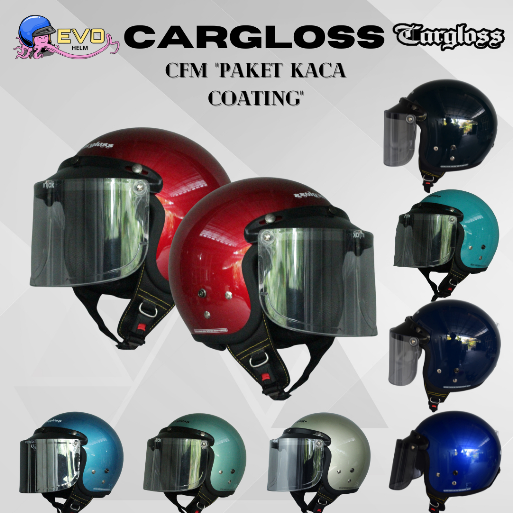 CARGLOSS CFM RETRO PAKET KACA DATAR COATING ORIGINAL PRIA / WANITA DEWASA, CARGLOSS HELMET OFFICIAL