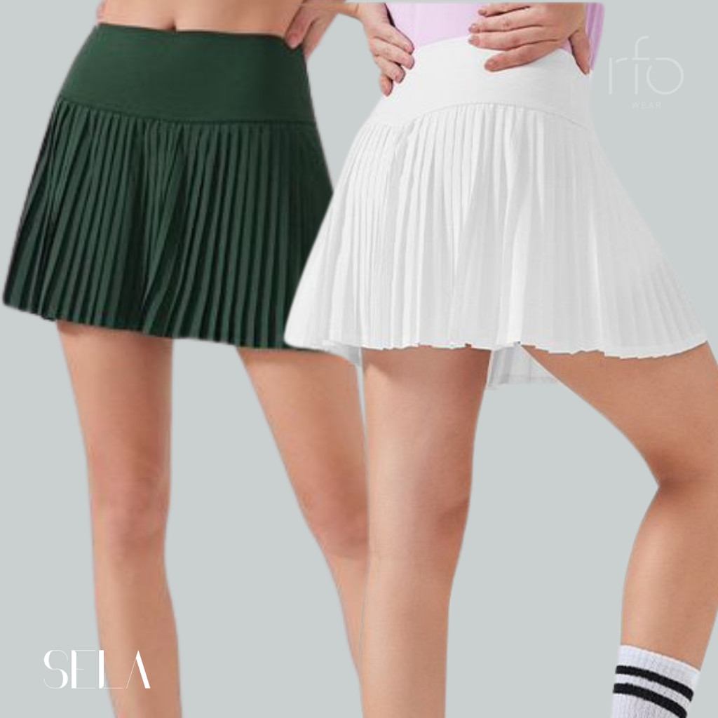 Sela Pleated Tennis/Padel Skort Retro Green, Black, White, Light Blue