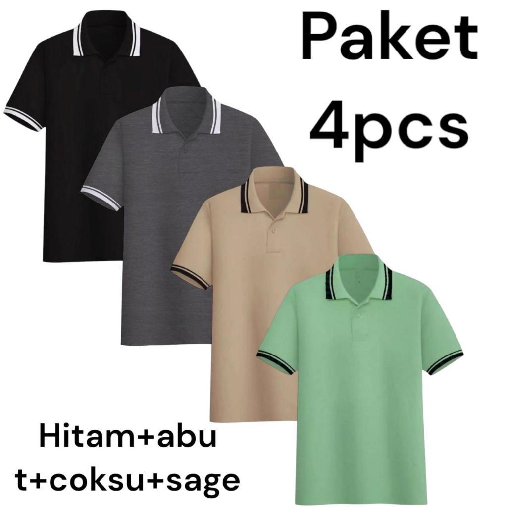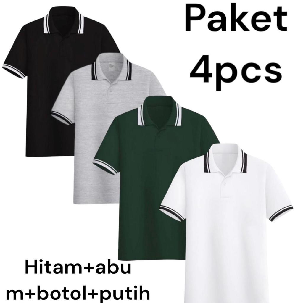 Paket 4Pcs Kaos Polo /Shirt Polos Hitam Putih Kerah Stripe | Cowok/ Wanita