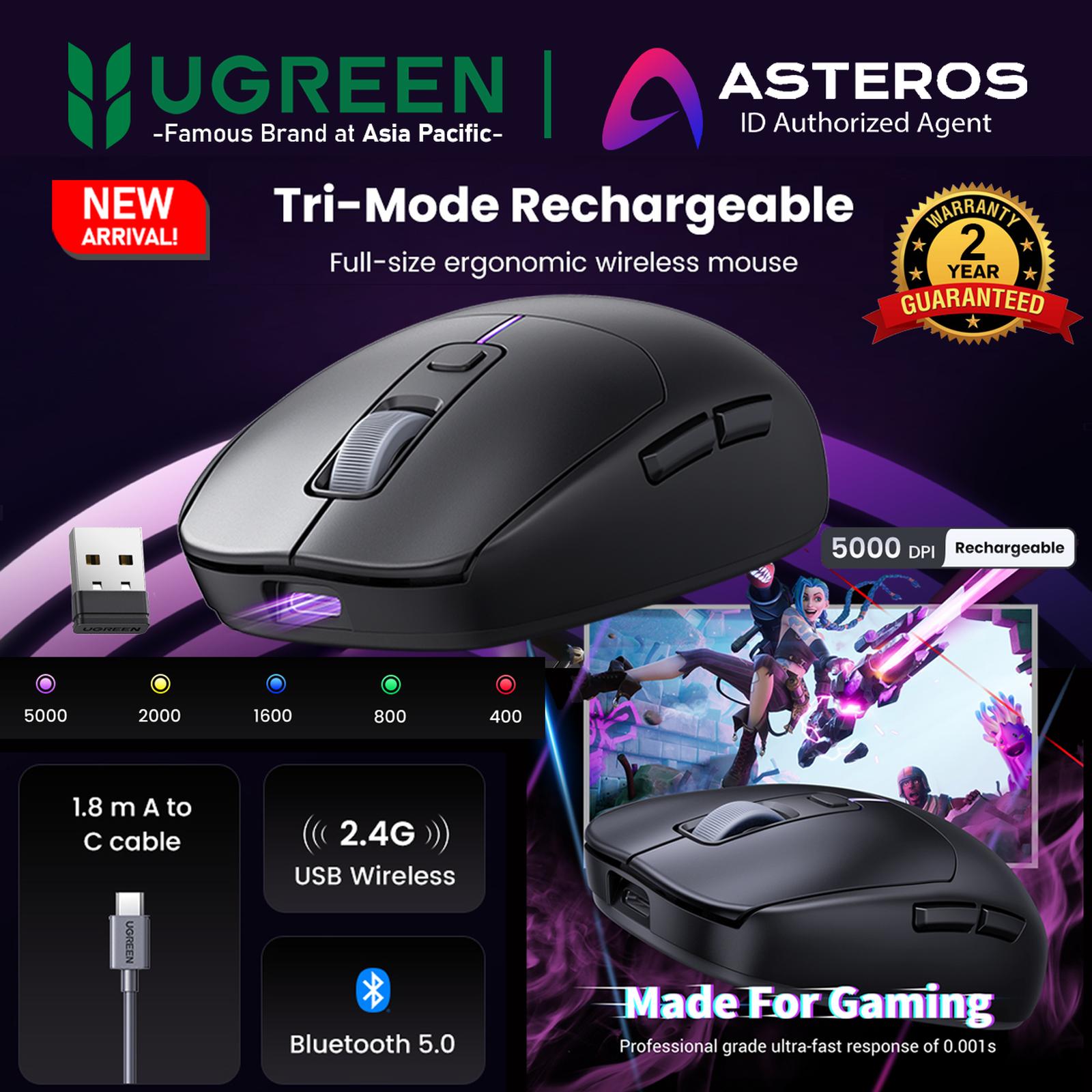UGREEN Official Store - Mouse Gaming Wireless Bluetooth 5.0 Tri-Mode Rechargeable Ergonomic 90539 Original