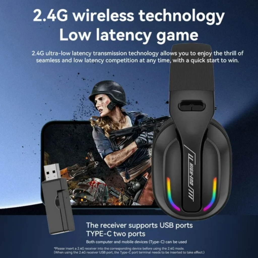 JITE M8 Gaming Headset 4 in 1 Hitam Wireless Bluetooth Headphone Low Latency Suara 9D Bluetooth V5.4