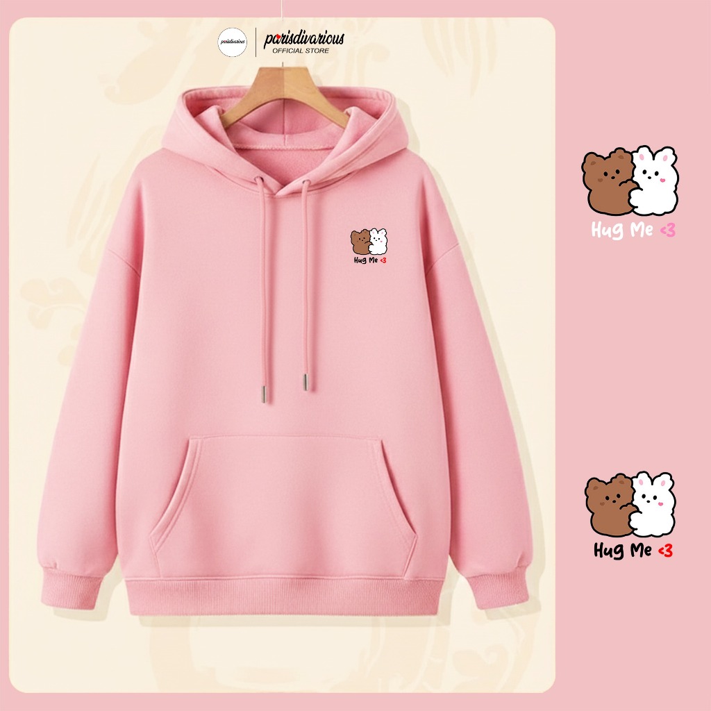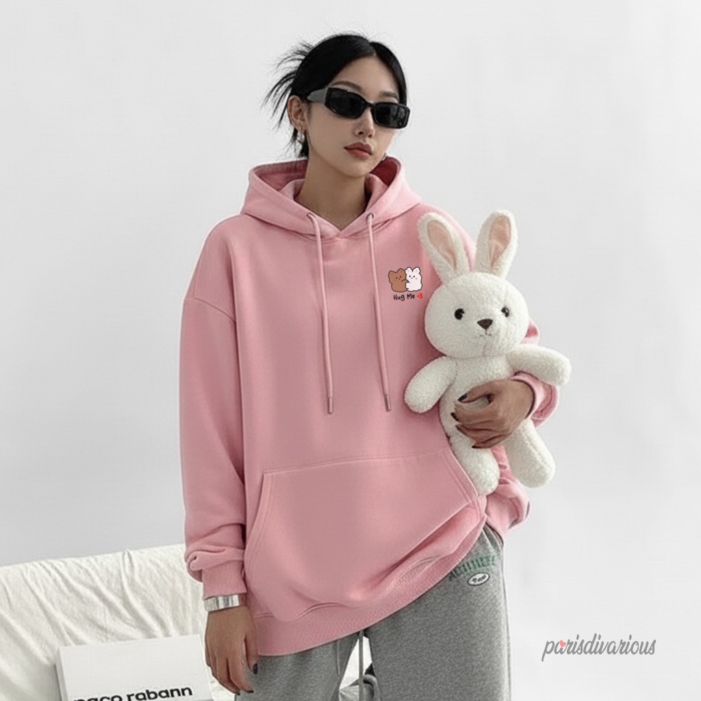 Hoodie Sweater Jumper Oversize Distro Hug Me G13 Unisex Fleece Tebal Boxy Lucu Imut Keren Unisex