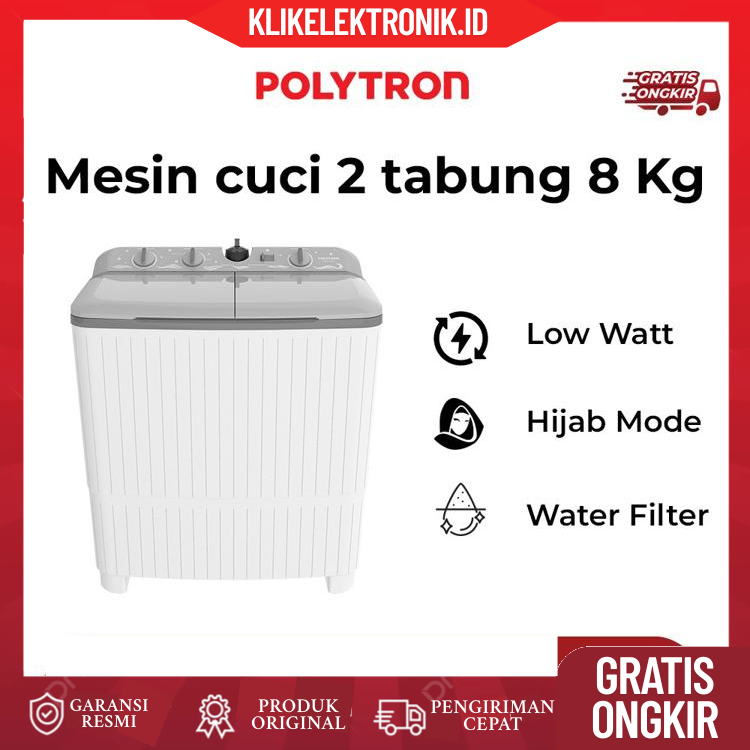 GRATIS ONGKIR POLYTRON Mesin Cuci 2 Tabung Giant Series Hijab 8 KG - PWM 8076Y