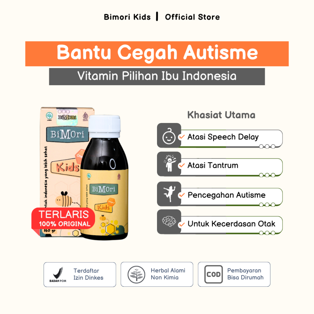 Bimori Kids Vitamin Anak Autisme Untuk Tingkatkan Kecerdasan Anak ADHD Speech Delay Tantrum Herbal