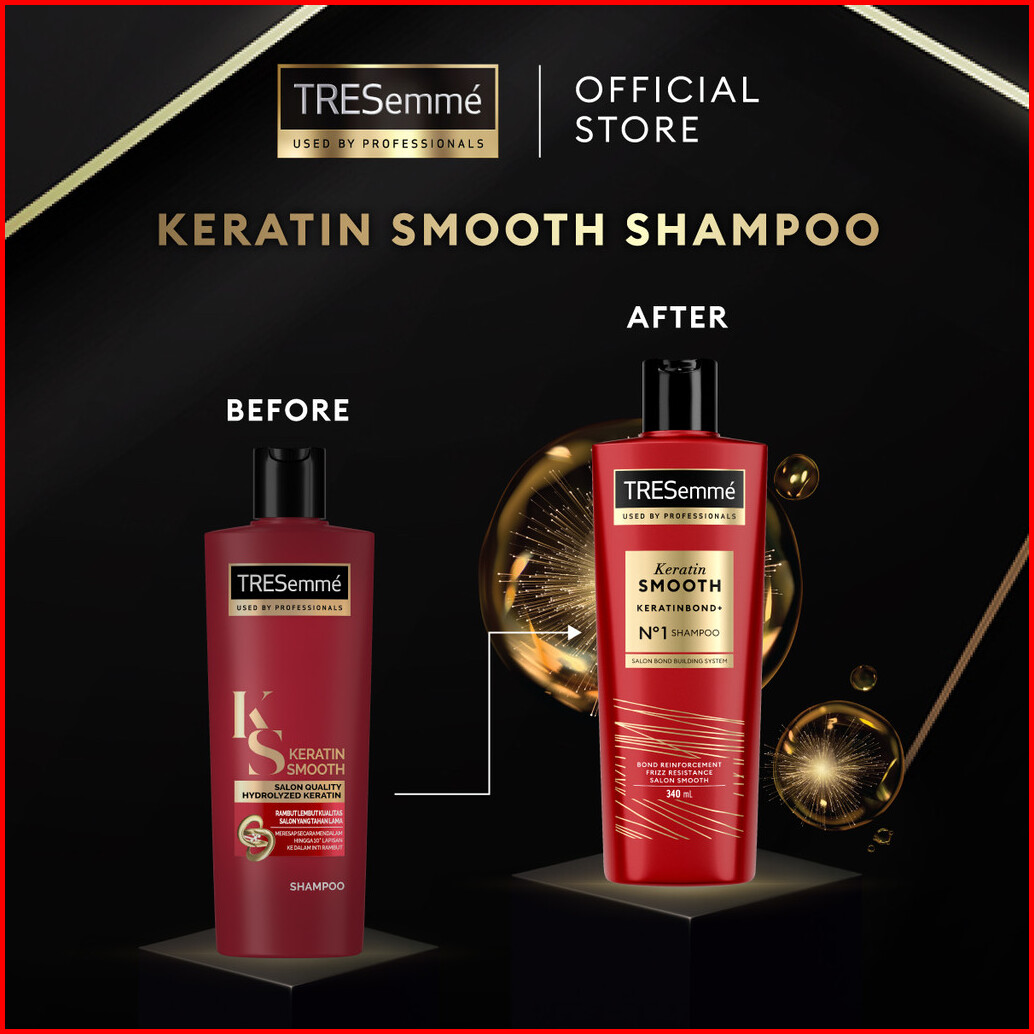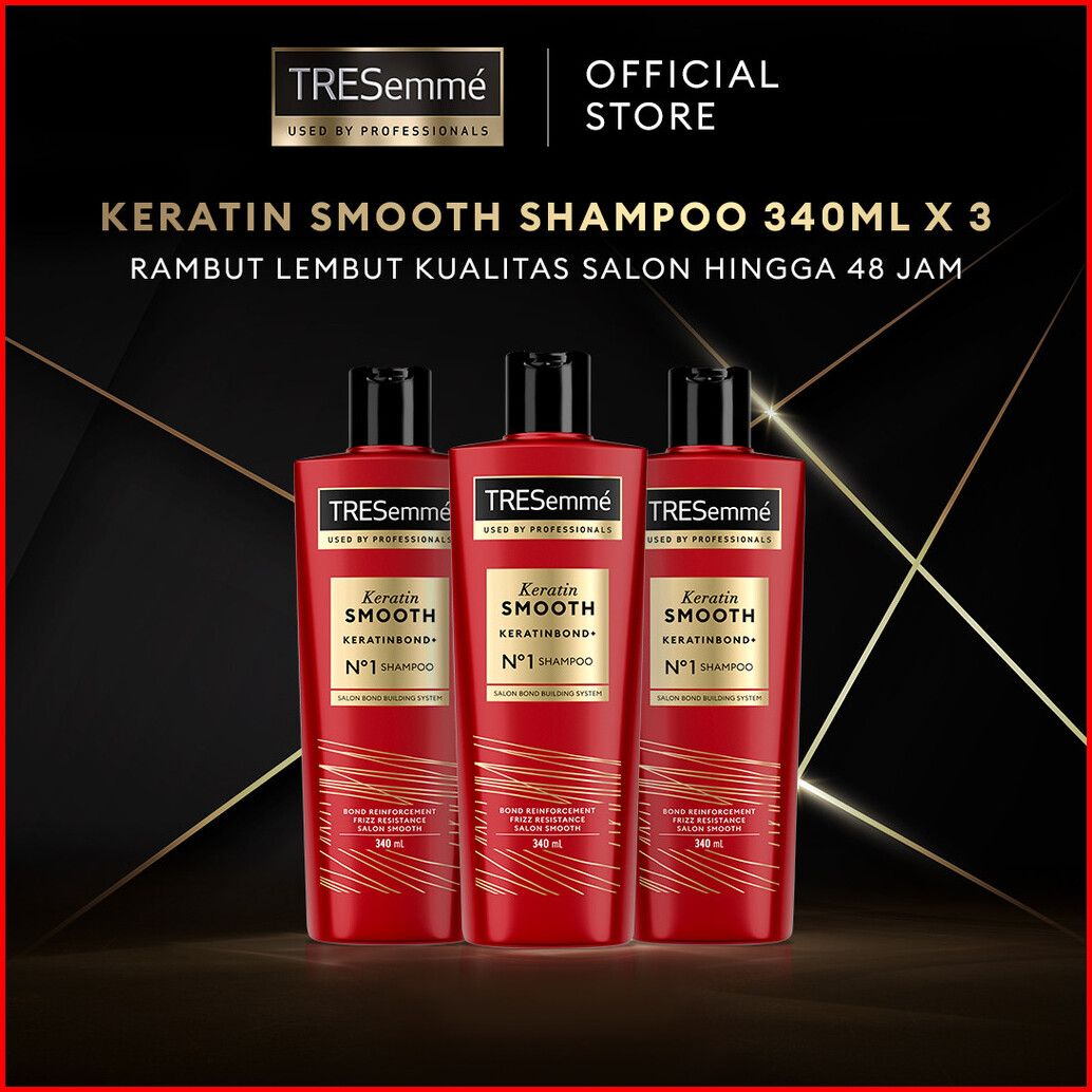 Tresemme Shampoo Keratin Smooth Shampo Rambut Lembut 48 Jam With Hydrolyzed Keratin 340ml X3