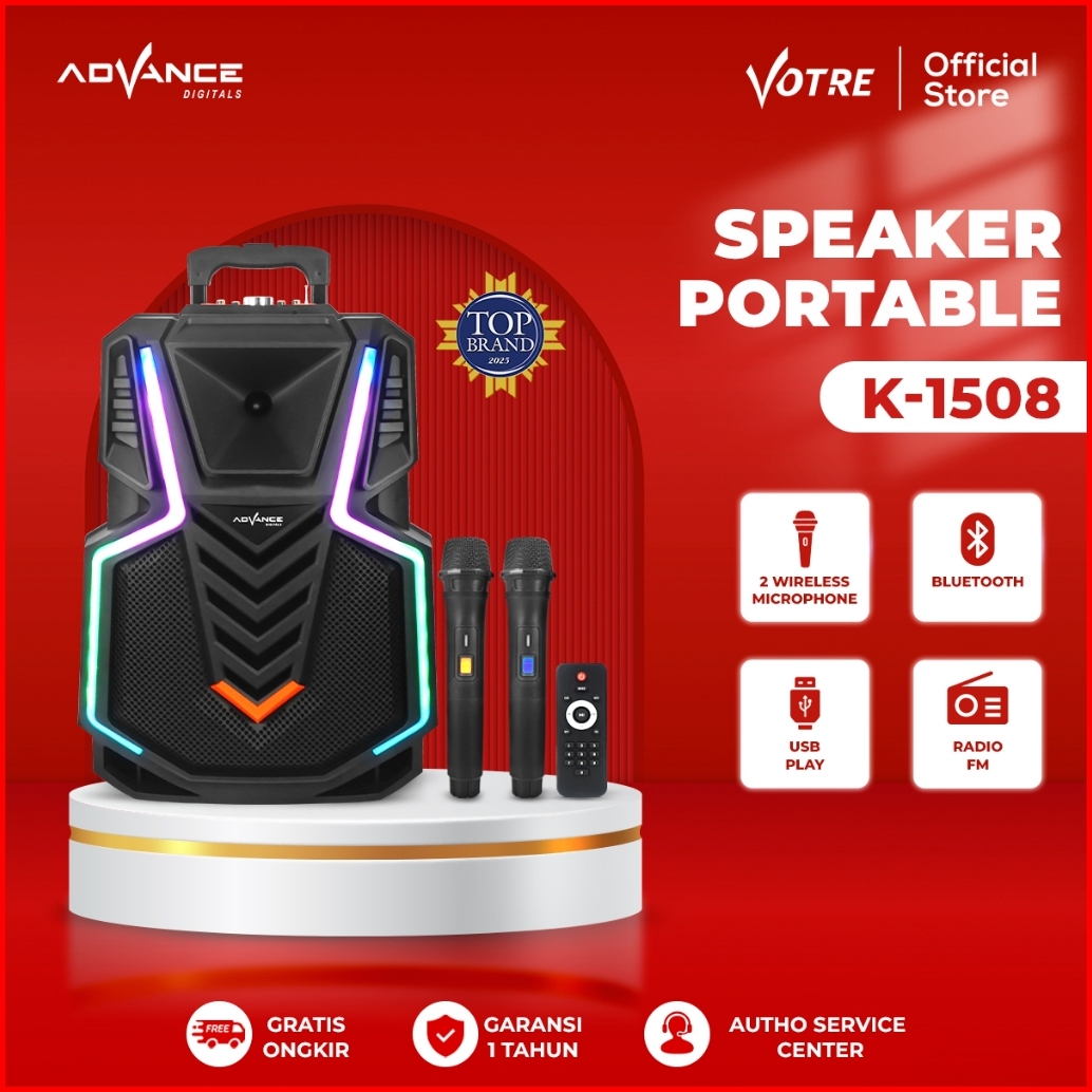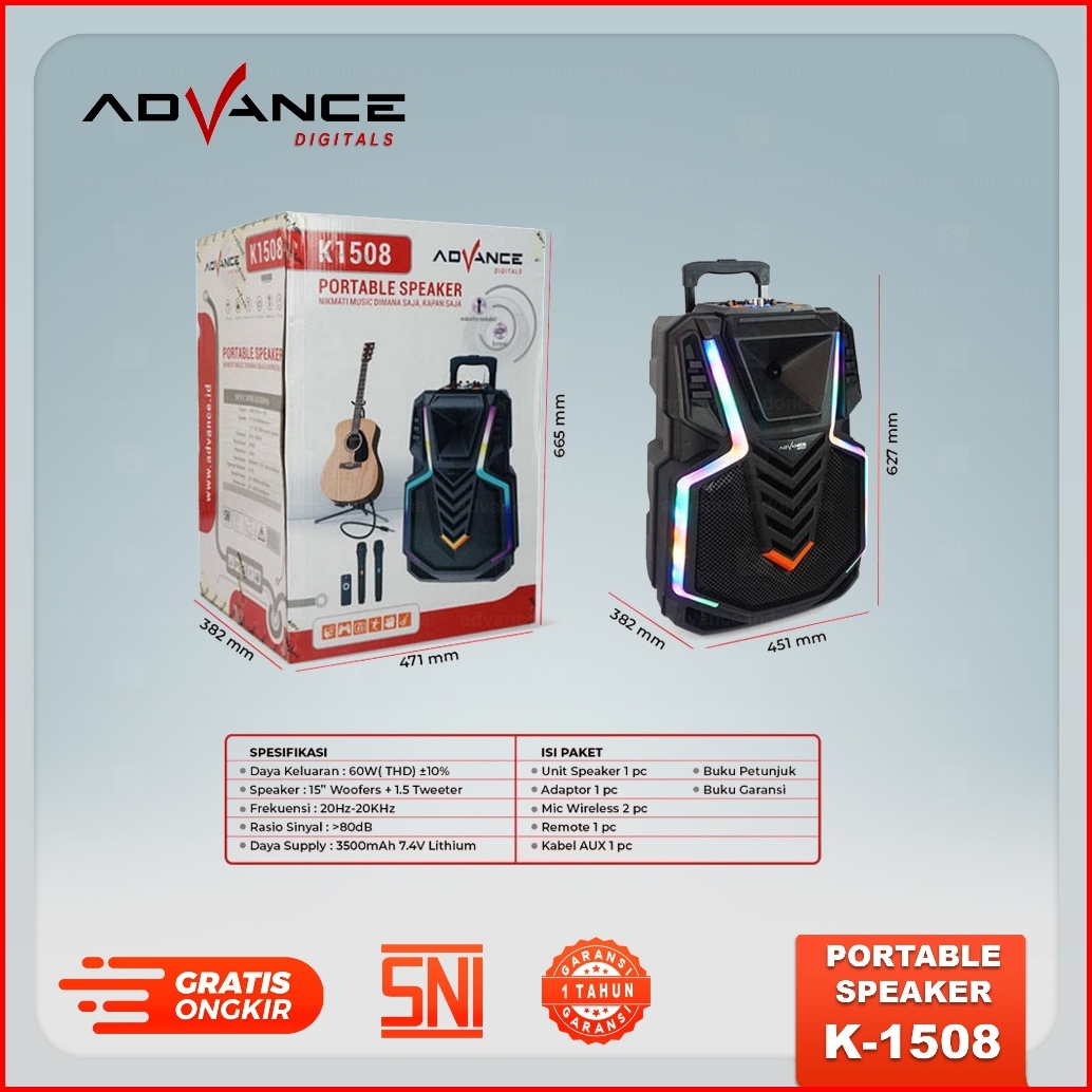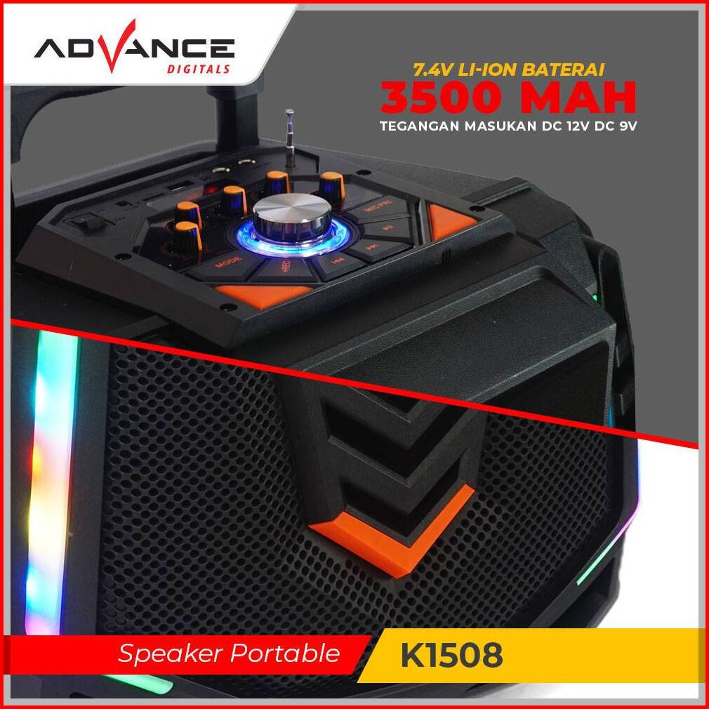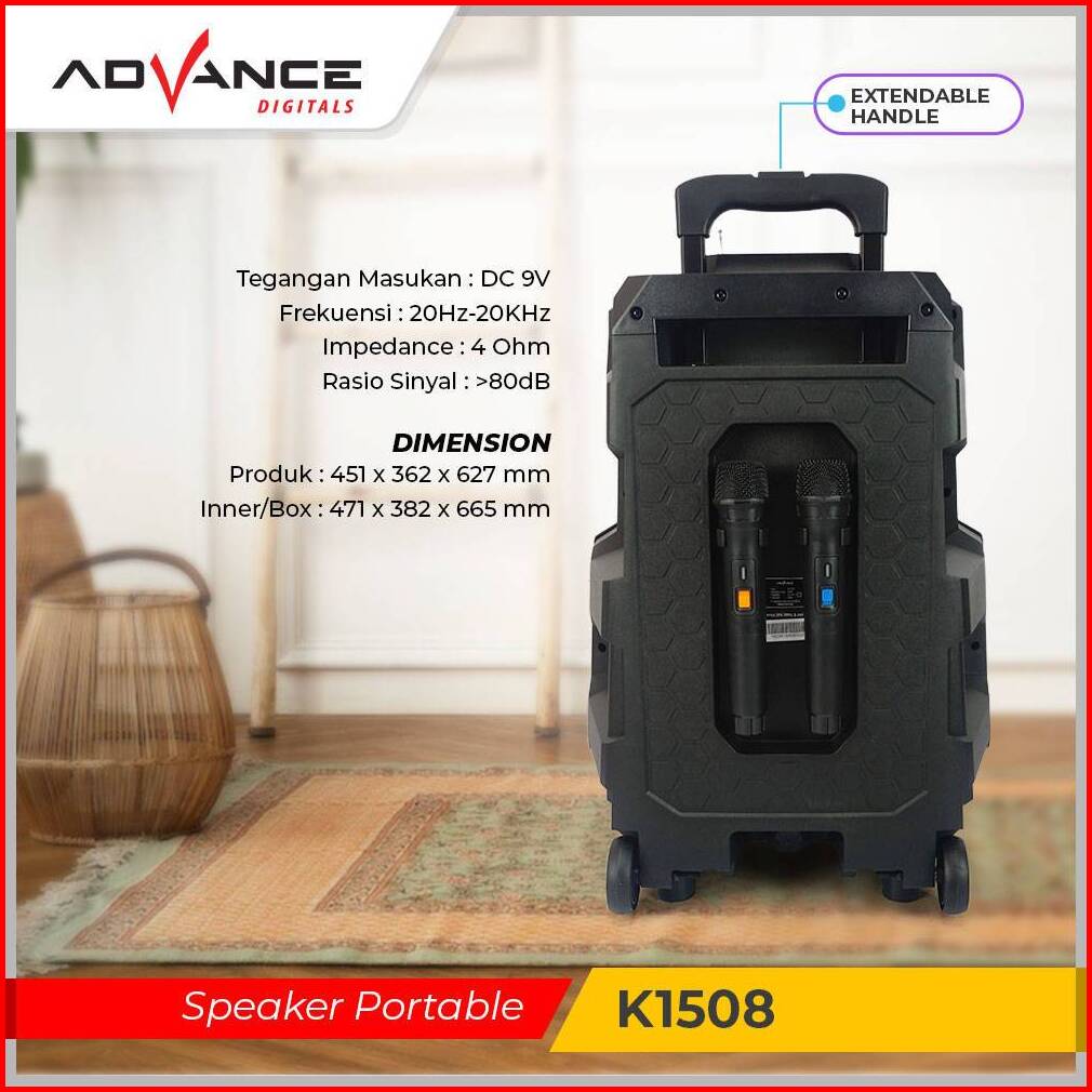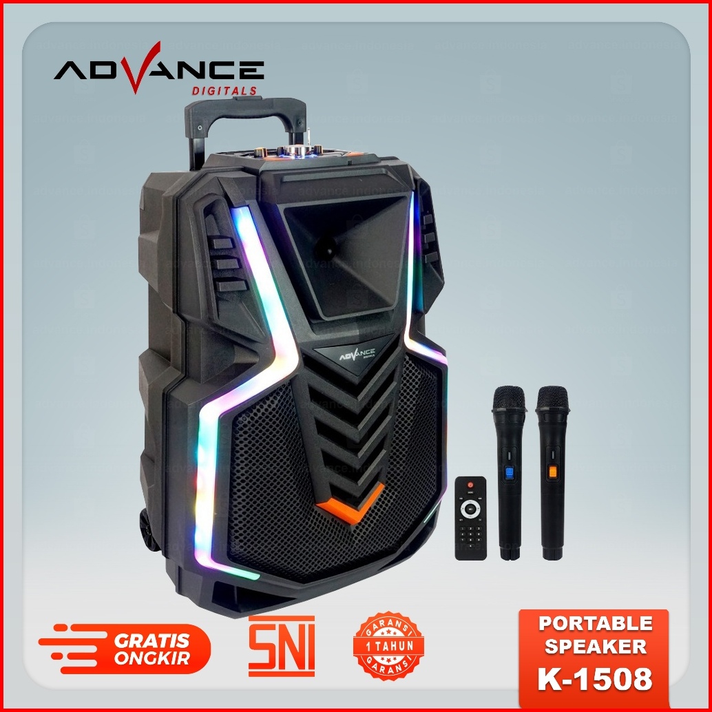 Advance K-1508 Speaker 15 Bluetooth Portable Bass Outdoor Indoor 2 Mic Wireless Garansi Resmi 1 Tahun