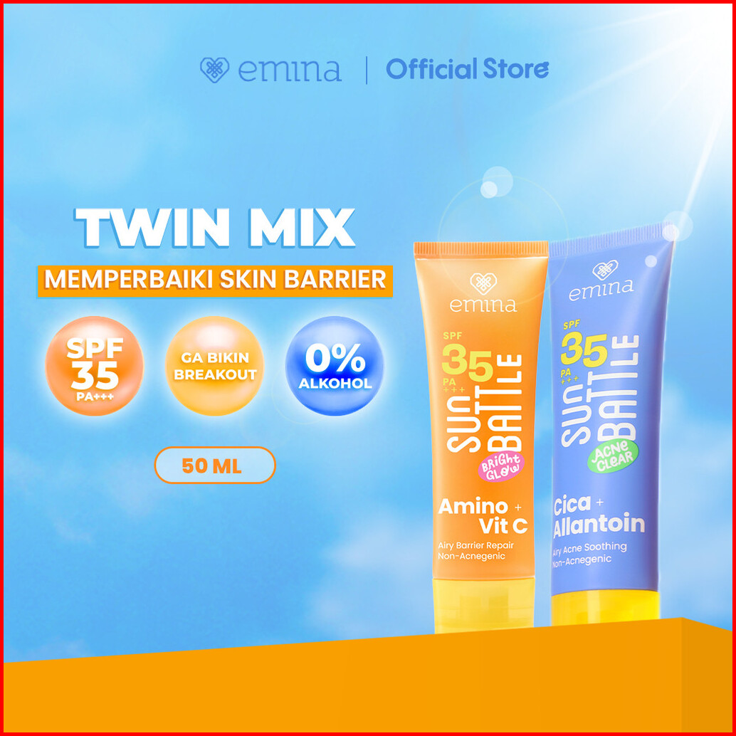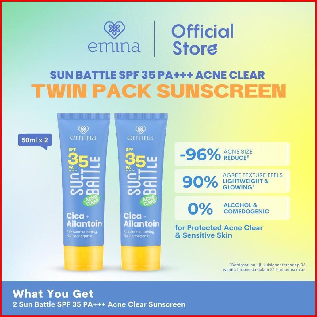 Twin Pack Emina Sun Battle Bright Glow Spf 35 Pa 50 Ml 2pcs - Paket Dua Sunscreen Serum Amino Vitamin C - Cerah Ringan H