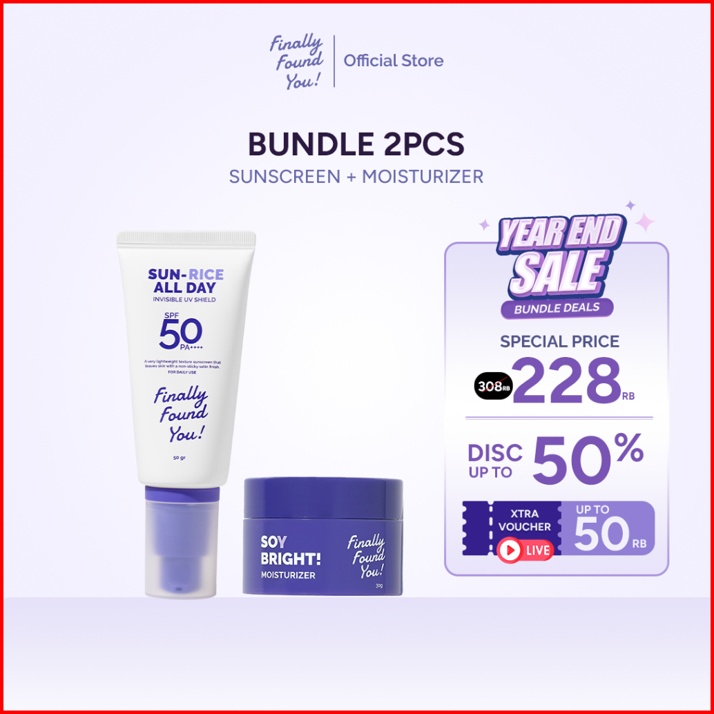 Finally Found You Bundle Soy Bright Moisturizer 30gr Sun-rice All Day Invisible Uv Shield 50ml