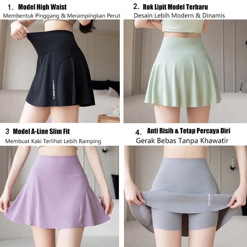 PROYOGA Rok Yoga Wanita High Waist 2-in-1 – Rok Celana Dua Lapis dengan Kantong, Cocok untuk Tenis, Badminton & Workout