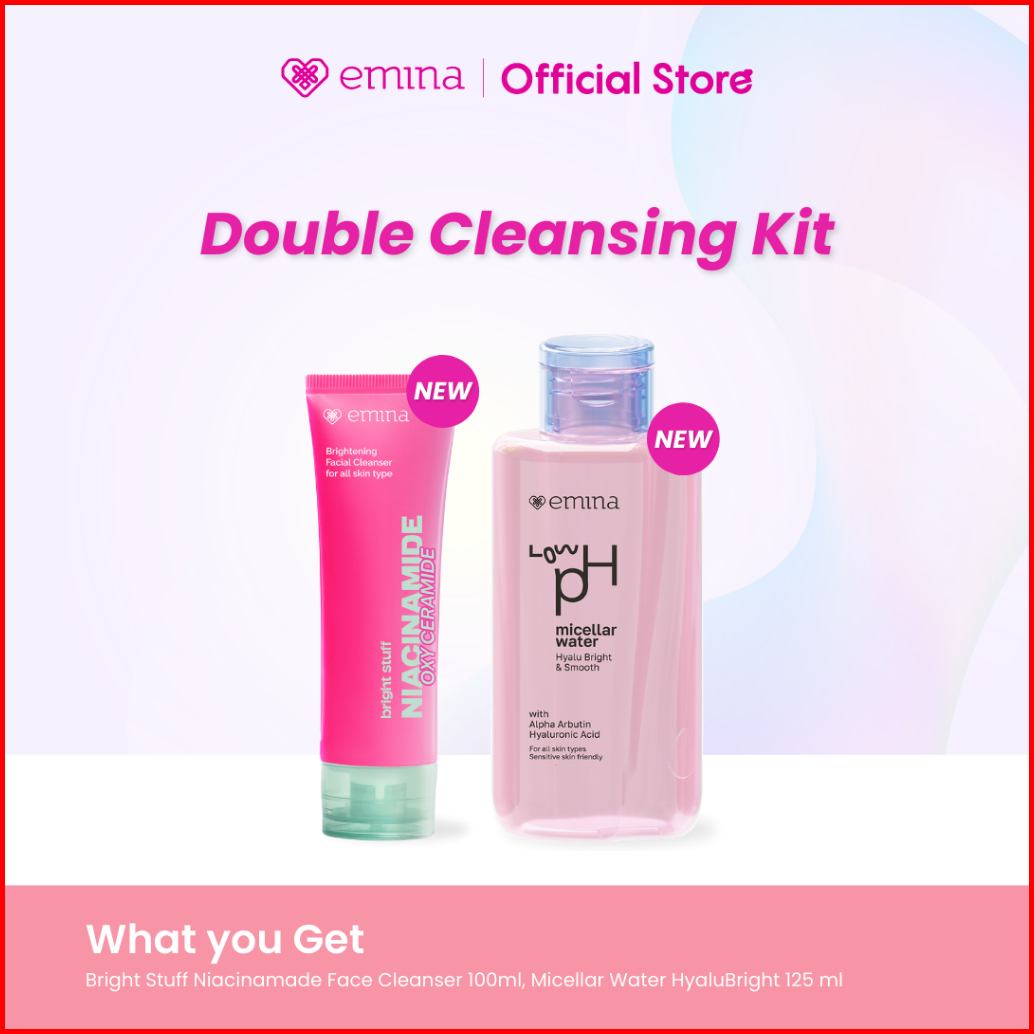 Emina Double Cleansing Kit - Micellar Water Face Wash 100ml 50ml - Paket Cerah Glowing Cerah Glowing Glowing Mengontrol
