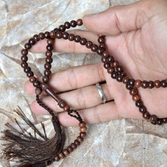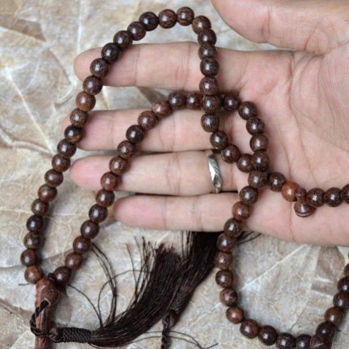 Indahcraft-Tasbih Muslim 99 Butir Galihasem Teras Kayu Asem Asli Natural Alami Rumbai Motif Hitam - 06 Mm