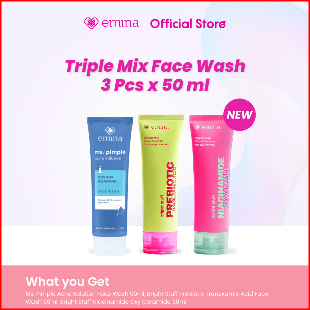 Triple Pack Emina Bright Stuff Niacinamide Emina Prebiotic Tranexamic Acid Face Wash For Acne Prone Skin - Sabun Muka Ce