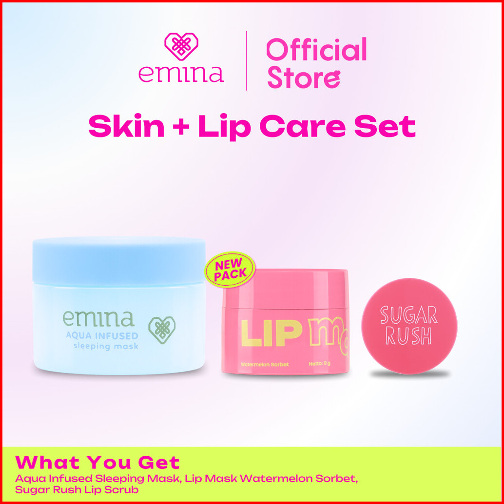Emina Skin Lip Care Package Hellohealthyskin Lip Mask. Lip Scrub Sleeping Mask - Paket Perawatan Bibir Dan Kulit Sehat