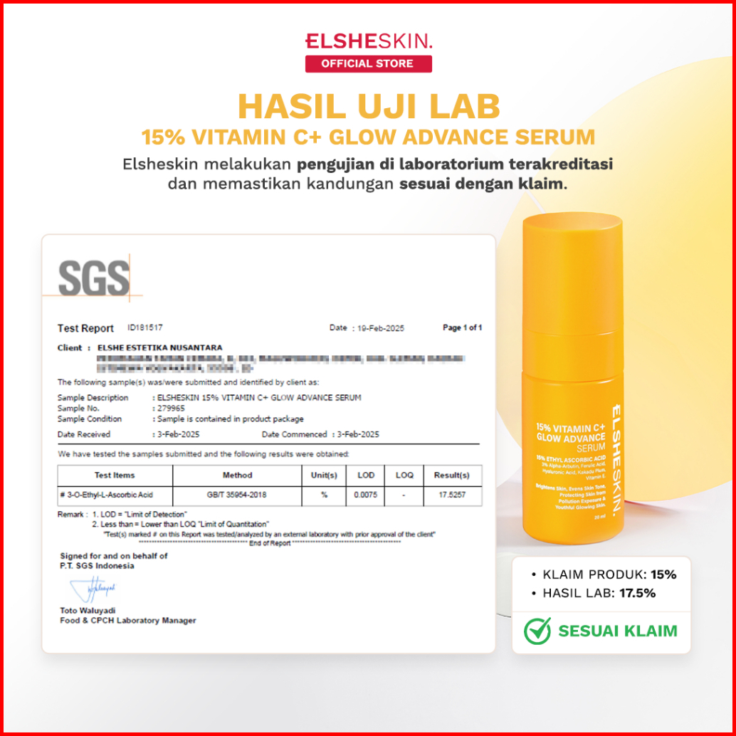 New Launch Elsheskin 15 Vitamin C Glow Advance Serum 20ml - Brightening Skincare Serum Wajah Tampak Lebih Cerah Dan Glow