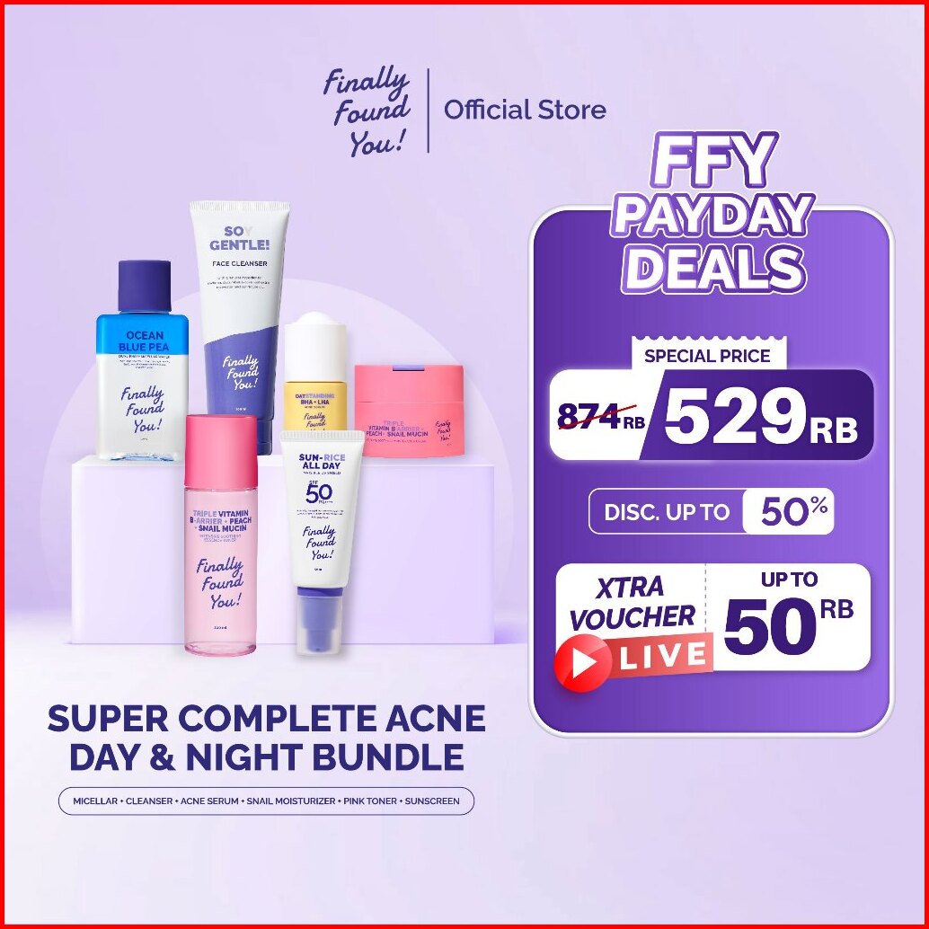 Finally Found You Super Complete Acne Day Night Kit 6in1 Micellar Water 100ml Soy Cleanser 100ml Pink Toner 100ml Acne S