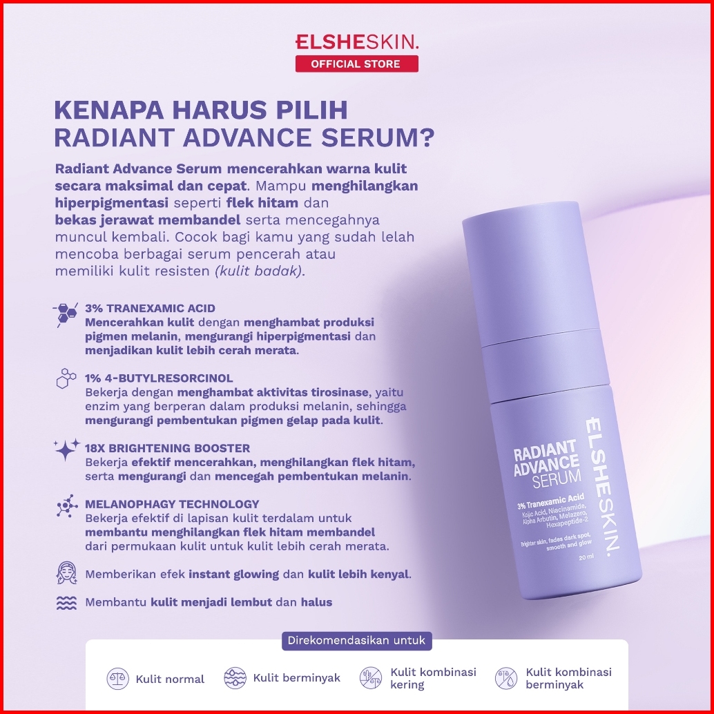 Special Elsheskin Radiant Advance Serum 20ml Elsheskin Radiant Glow Jelly Cleanser - Brightening Serum Cerahkan Kulit Ku