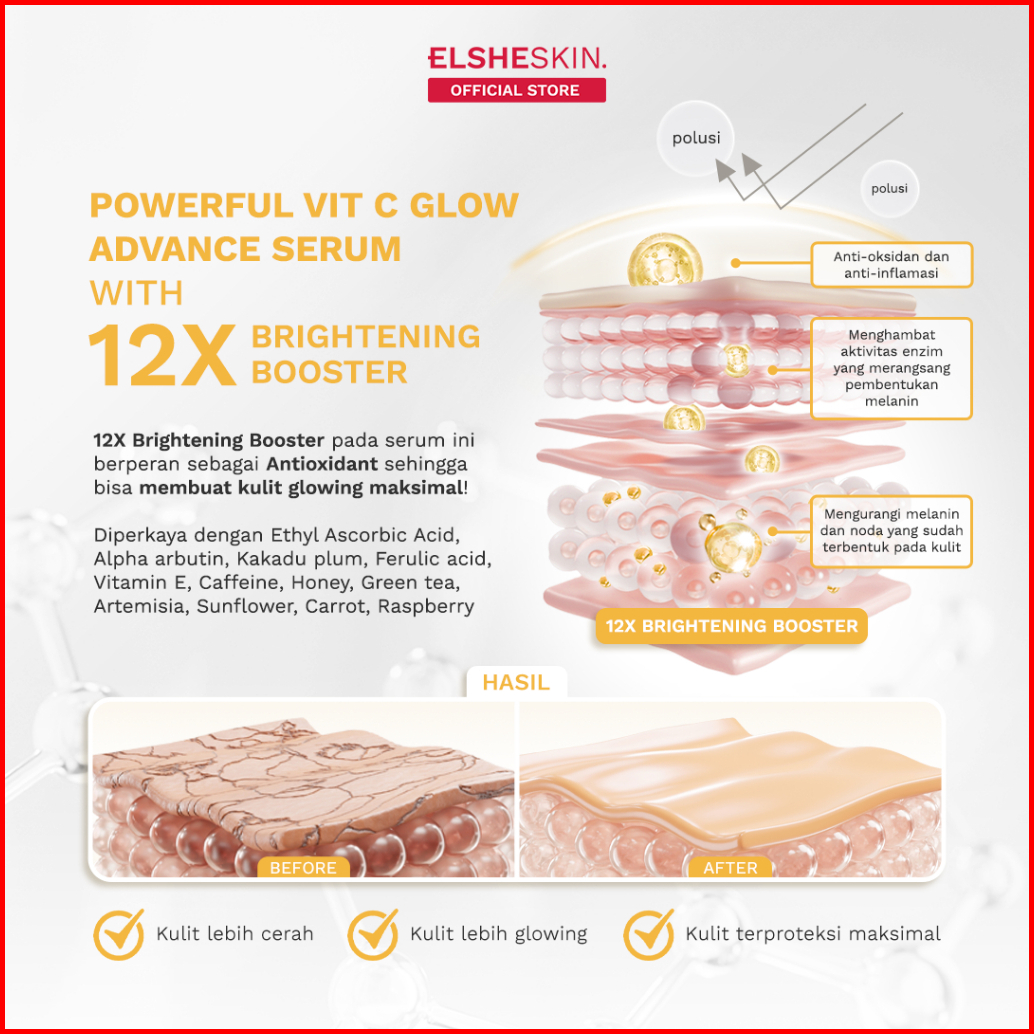 Twinpack Elsheskin 15 Vitamin C Glow Advance Serum 20ml - Brightening Skincare Serum Wajah Tampak Lebih Cerah Dan Glowin
