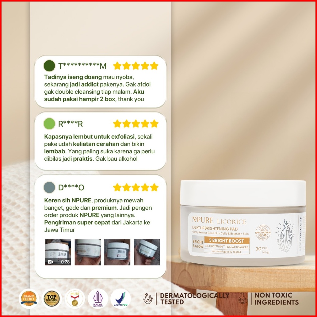 Npure Brightening Exfoliating Pad Licorice Light Up Kapas Wajah Exfoliasi Cerah Glowing