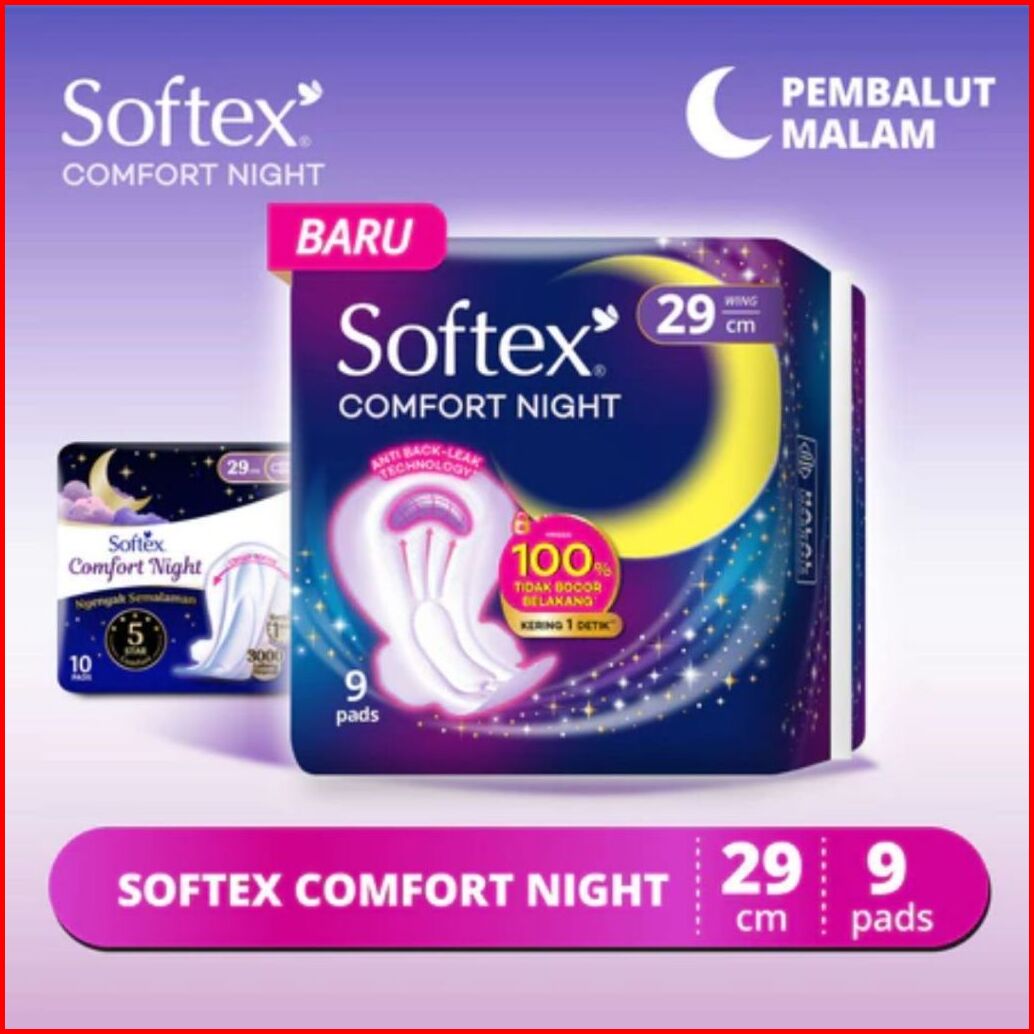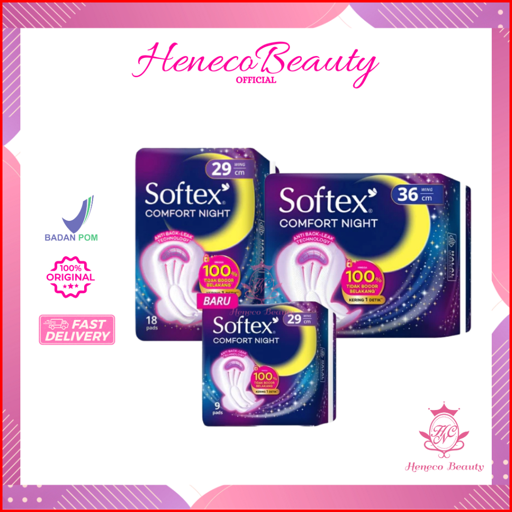Softex Comfort Night Wing 29cm 36cm - Pembalut Malam Henecobeauty