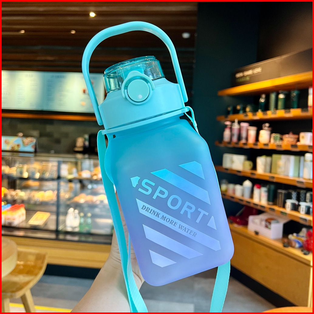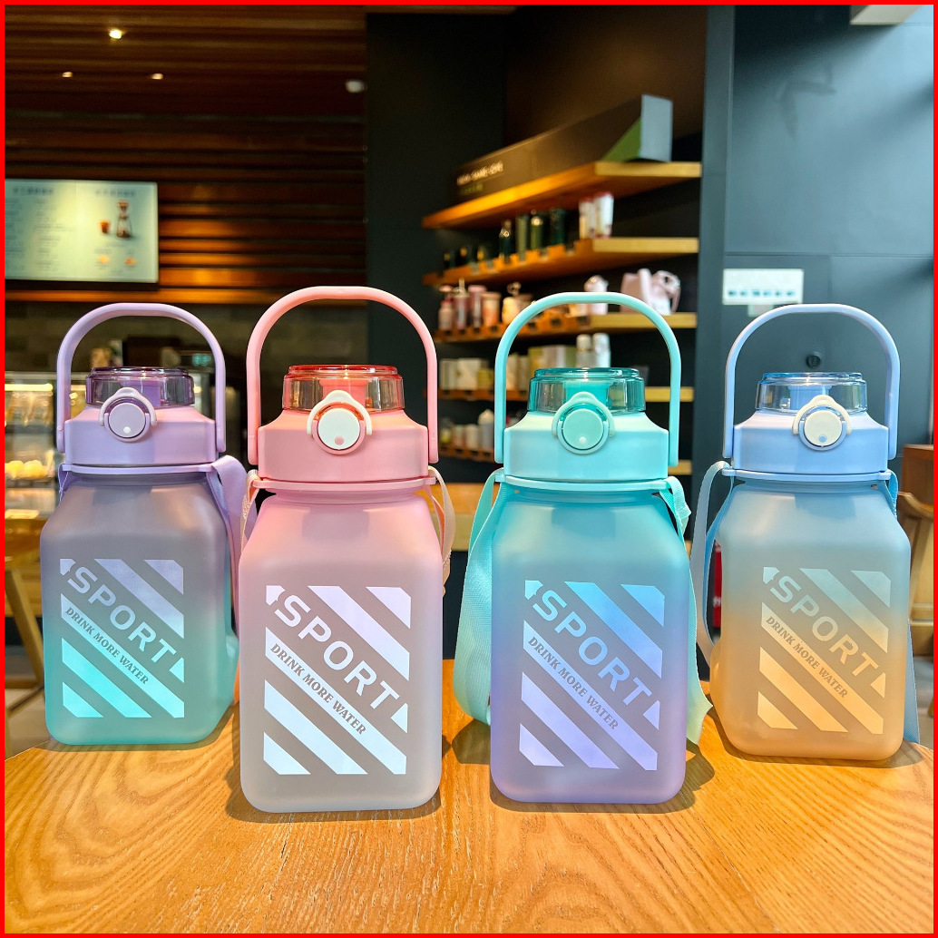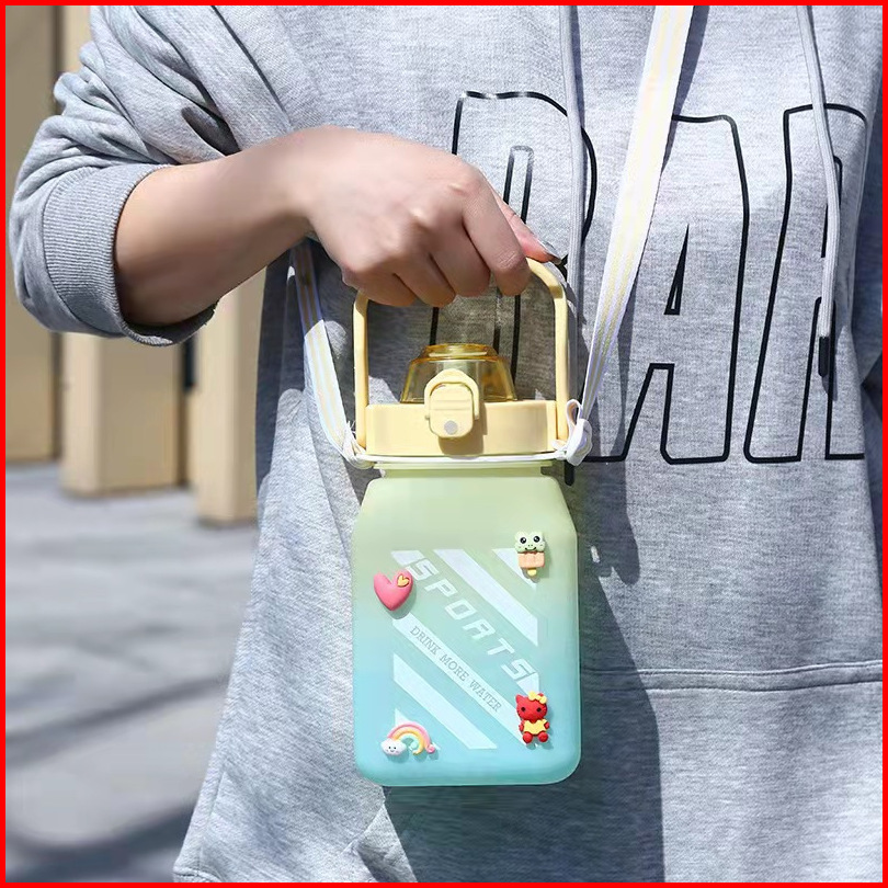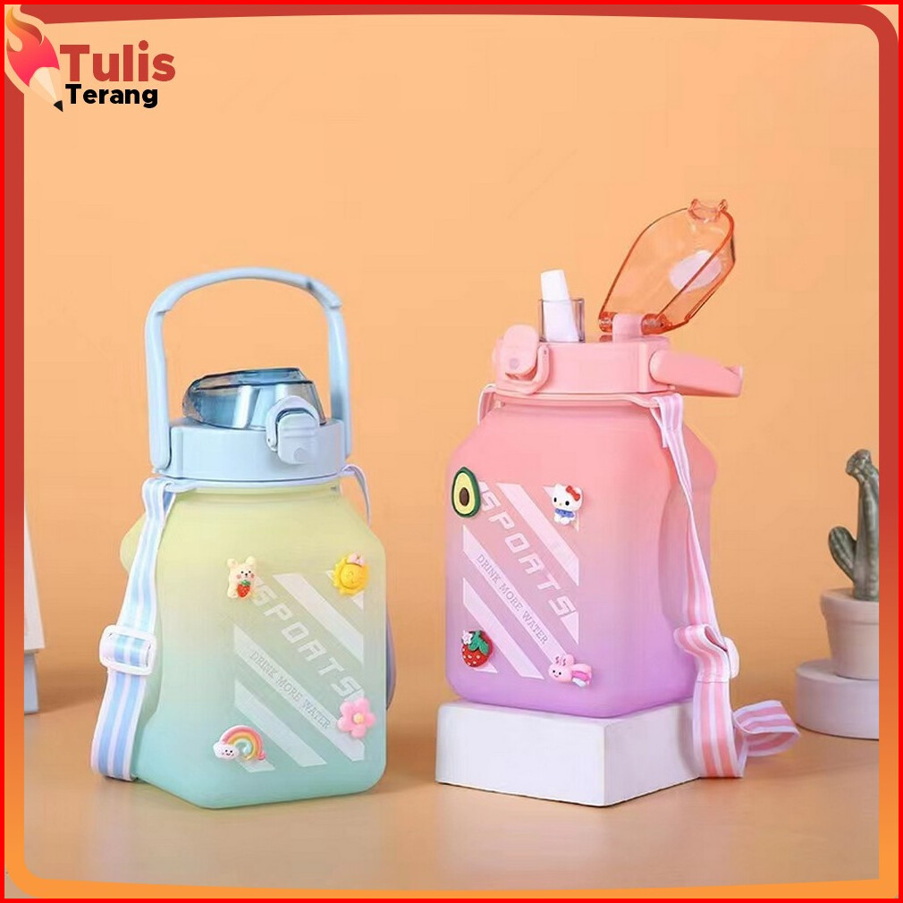 Tumblr Minum Anak Gemoy Kotak 1500ml Warna Gradasi Botol Minum Anak Anti Tumpah Sedotan Dan Tali Gantungan Tulis Terang
