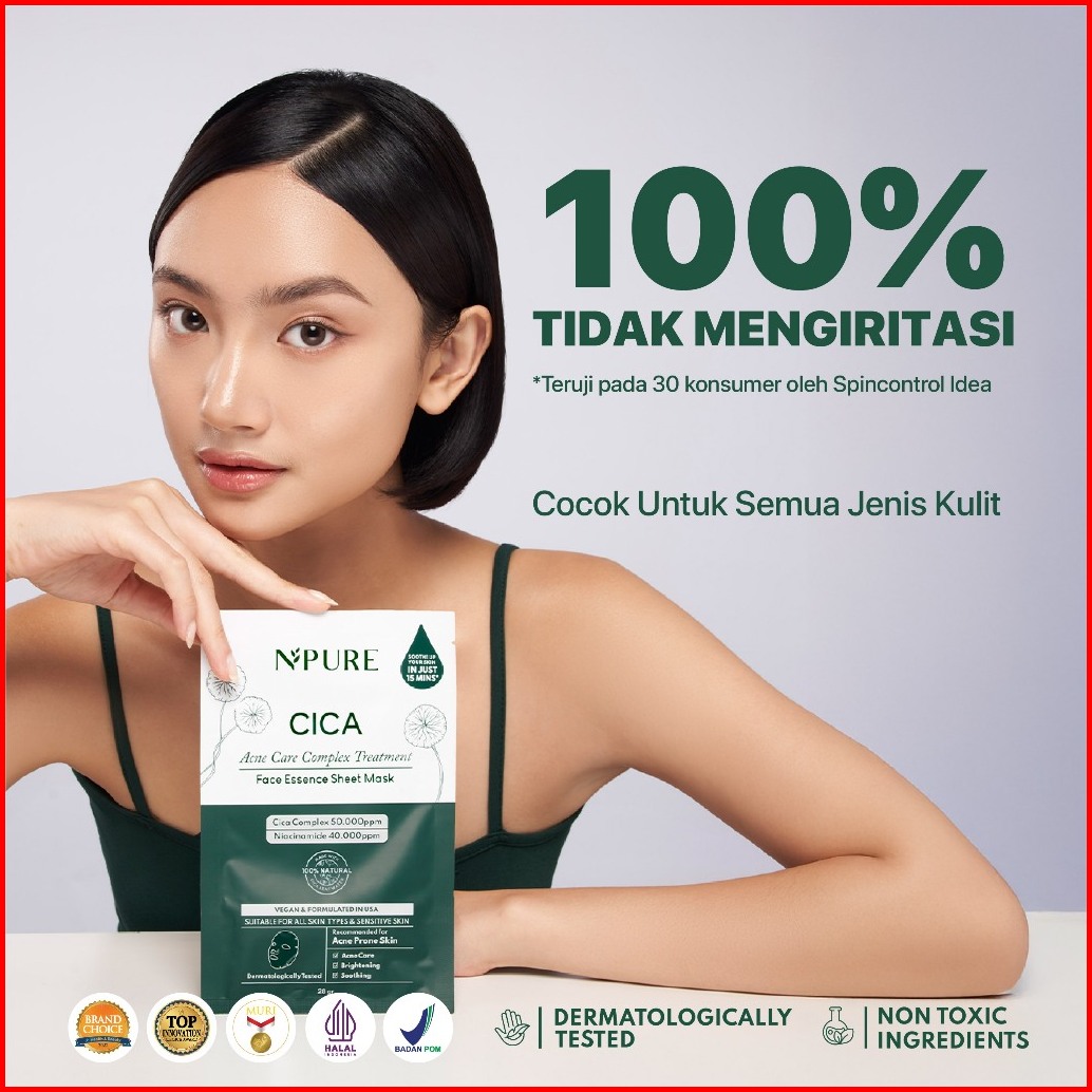 Sheet Mask - Npure Sheet Mask Cica Anti Acne Sheet Mask Masker Wajah Anti Jerawat