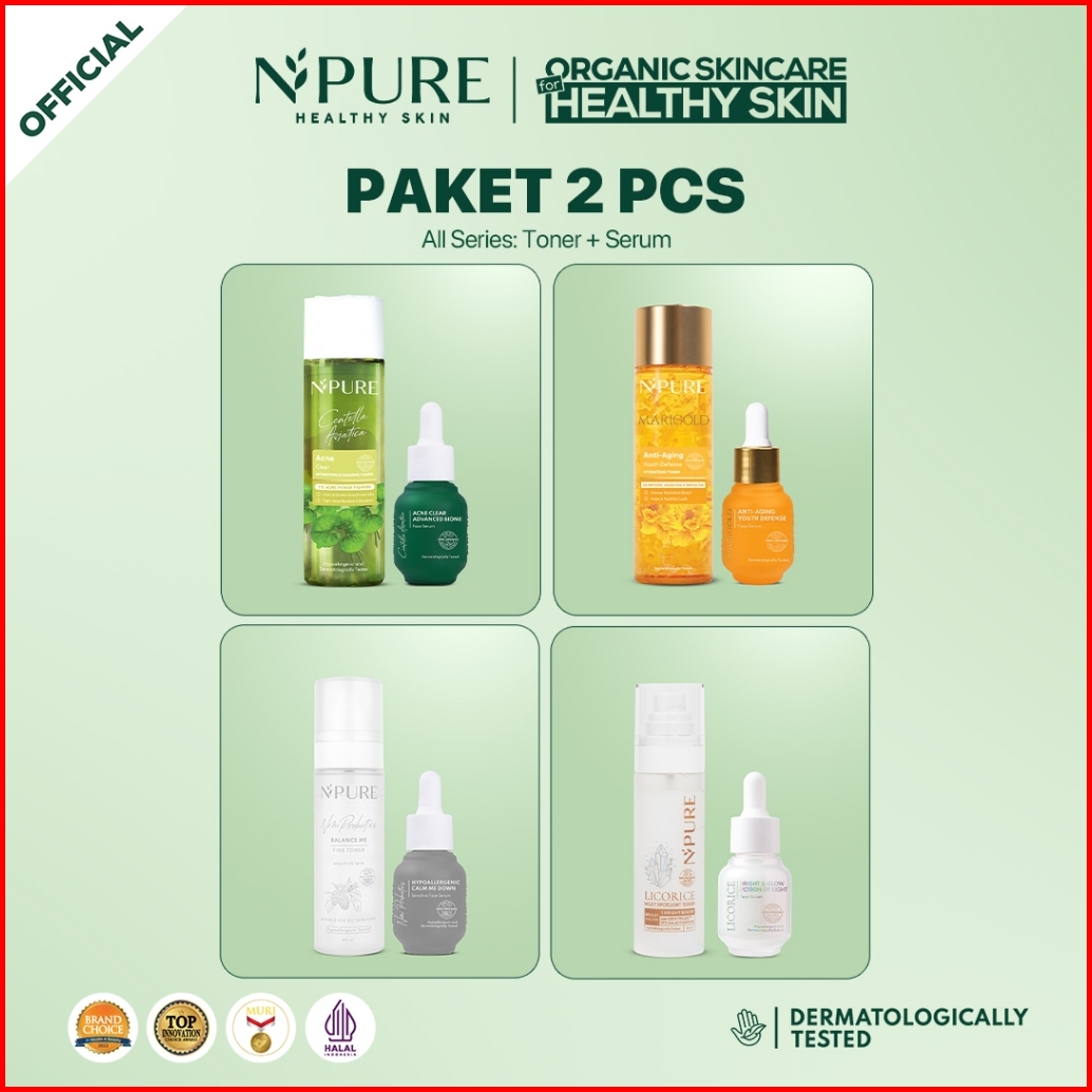 Special Price - Paket 2pcs - Npure Paket Toner Serum Acne Care Brightening Anti-aging Sensitive Skin Kit Perawatan Kulit