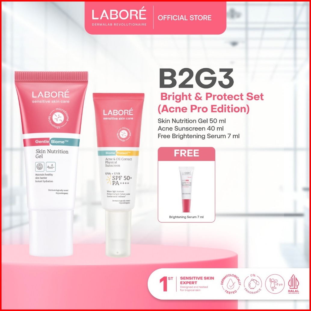 Best Sunscreen By Us Dermatologist Labore Bright Protect Set - Skin Nutrition Gel 50ml Physical Sunscreen 30ml Acne Oil