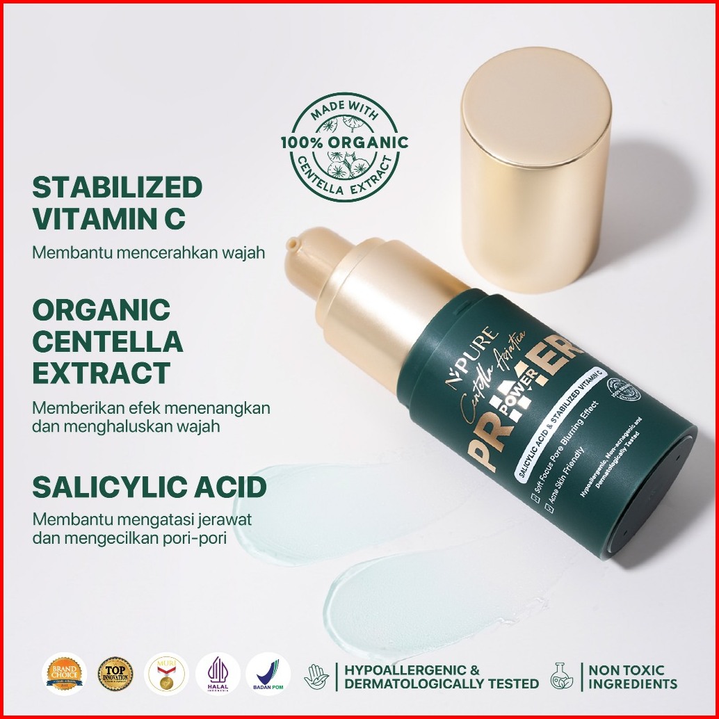 Npure Centella Asiatica Power Primer Base Makeup Blurring Effect Primer Kulit Berjerawat
