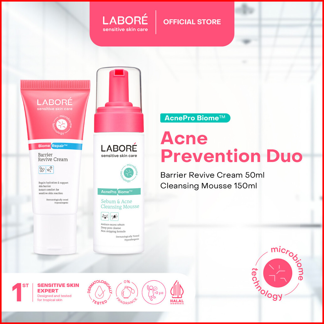Labore Acne Prevention Duo Barrier Revive Cream 50ml Cleansing Mousse 150ml - Paket Pelembab Dan Pembersih Wajah Kulit S