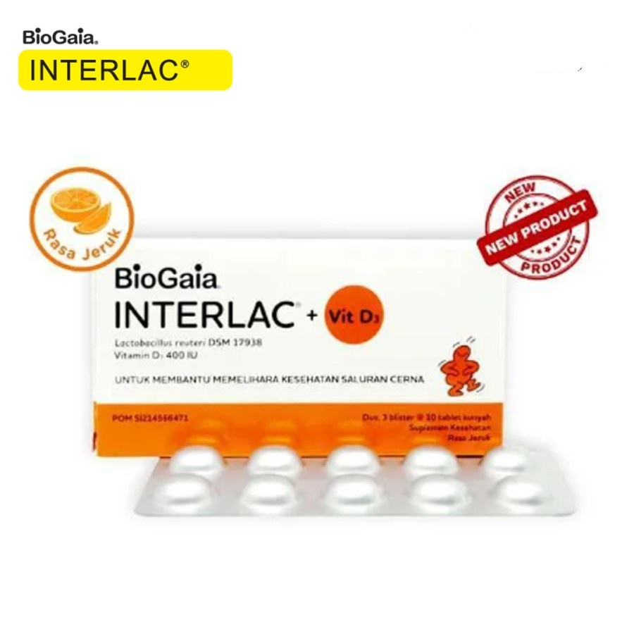 INTERLAC Tablet + Vit D3 Rasa Jeruk Vitamin Anak