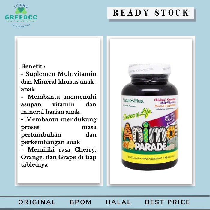 Nature's Plus SOL Animal Parade Assorted 45 Tab Vitamin Anak