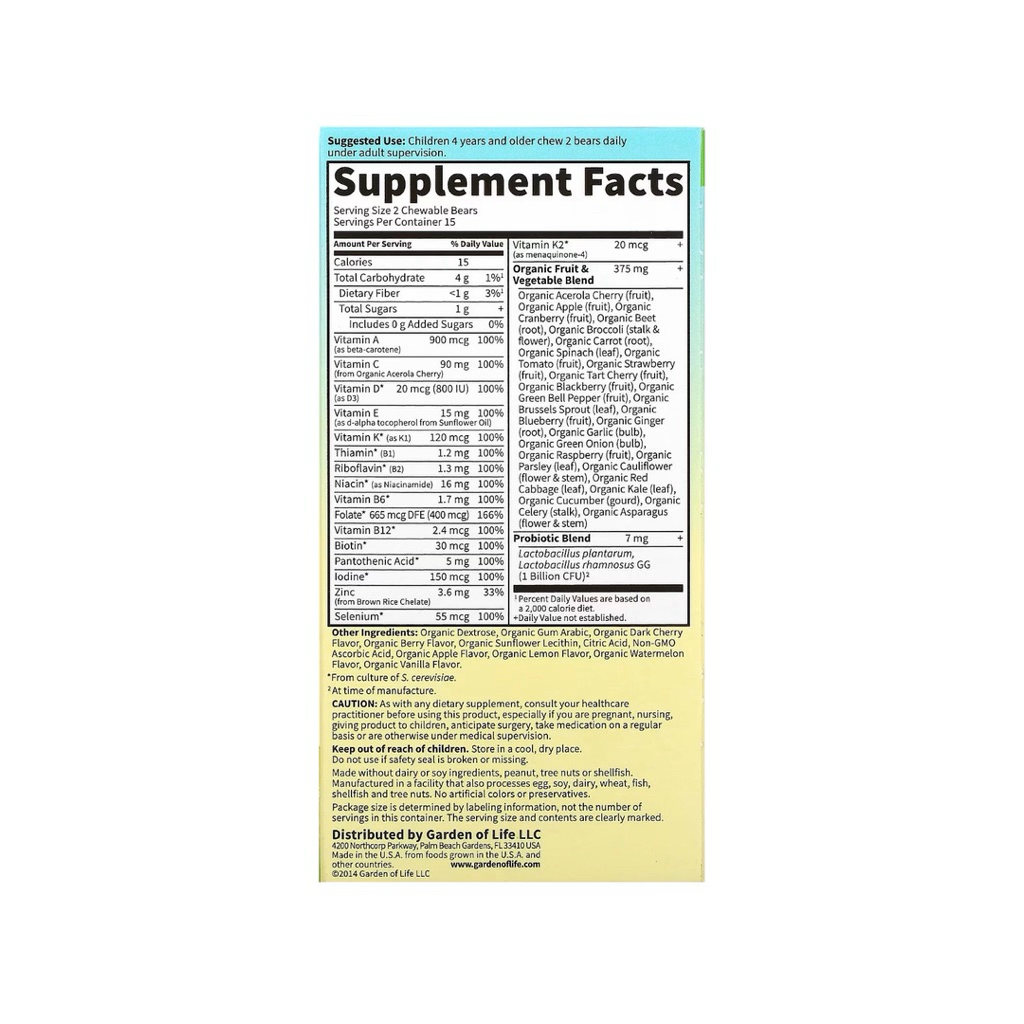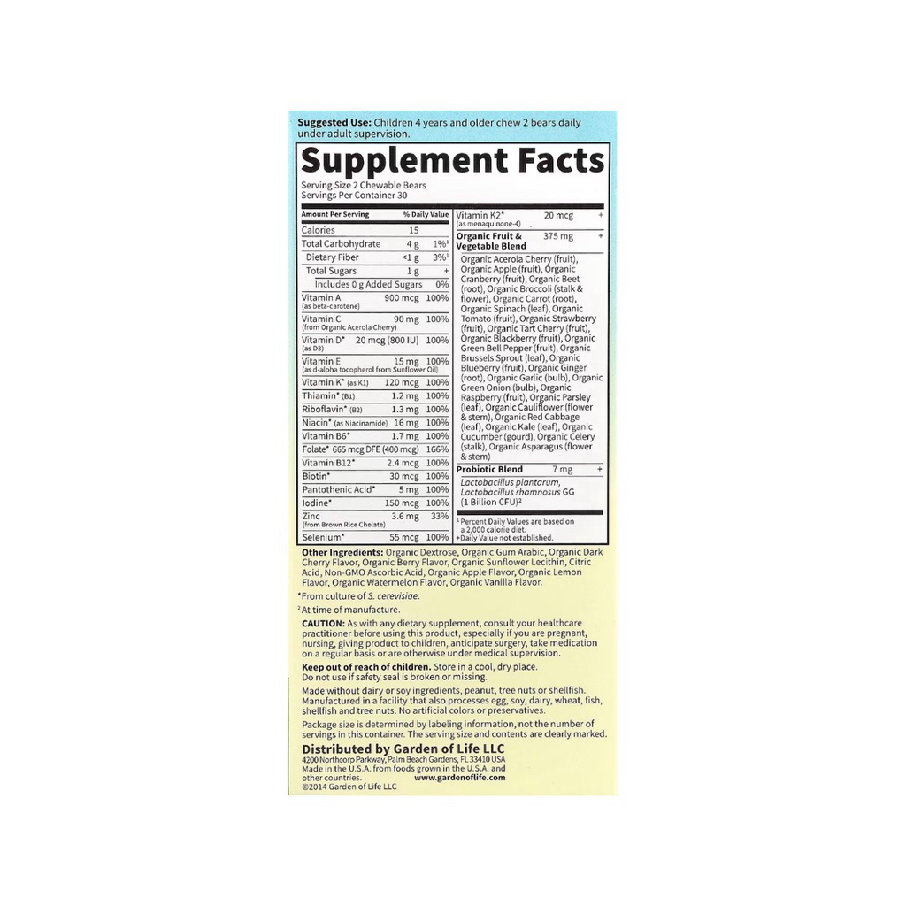 Garden of Life Vitamin e Kids Multivitamin for Kids Cherry Berry 30 60 Chewables Bears