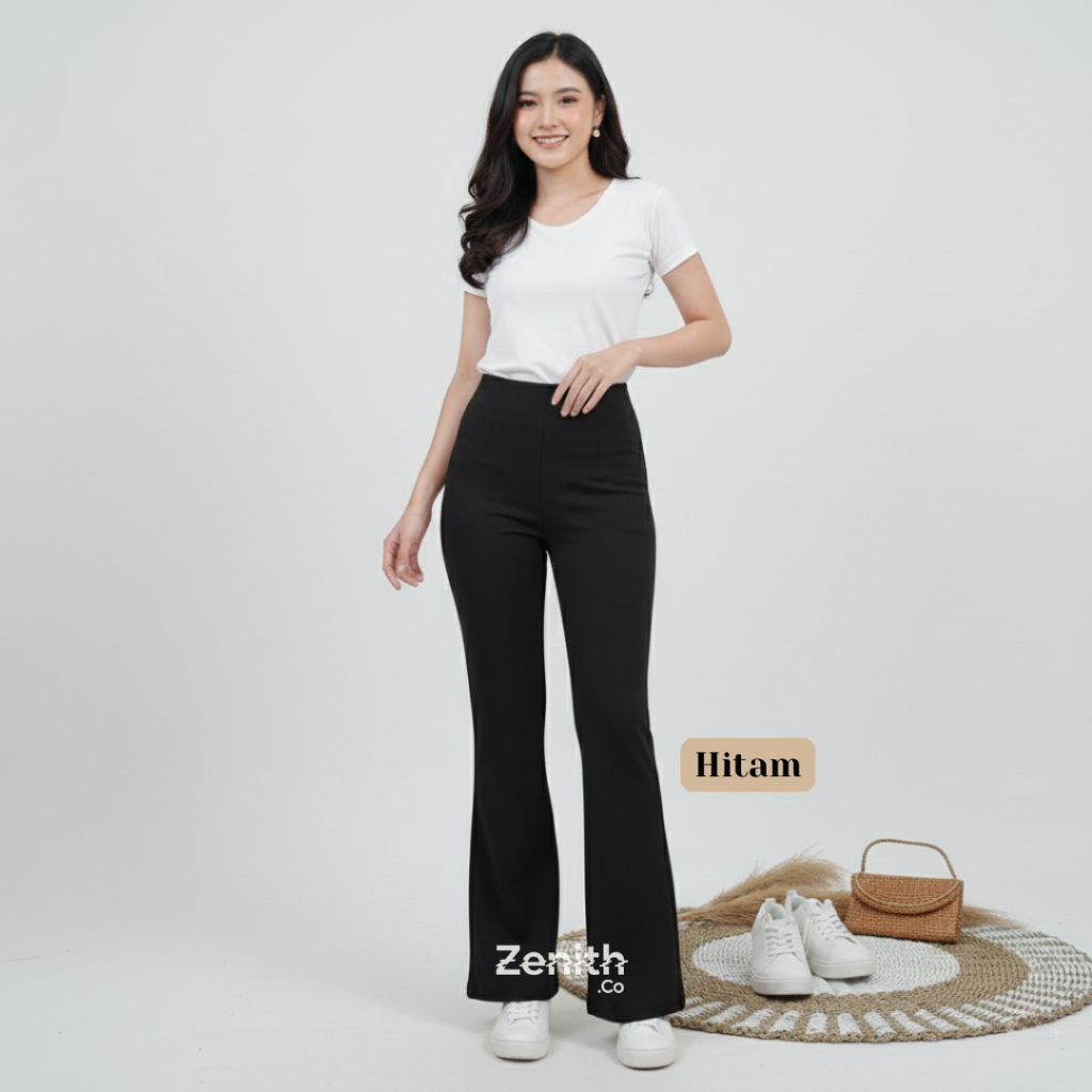 Zenith - Celana Flare Pants Highwaist Wanita Cutbray Scuba Premium Tebal