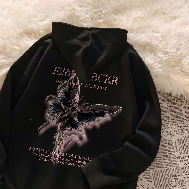 Po Floret Sweater Hoodie Oversize Wanita Butterfly Print Hoodie Wanita Oversize Korean Style Tebal Ori