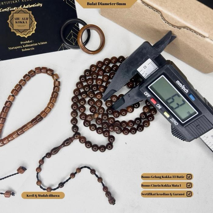 Tasbih Kokka Asli Bersertifikat Diameter 6Mm Bulat Kecil Bergaransi Asli 100 PERSEN Gratis Gelang Dan Cincin Kokka Motif Musli