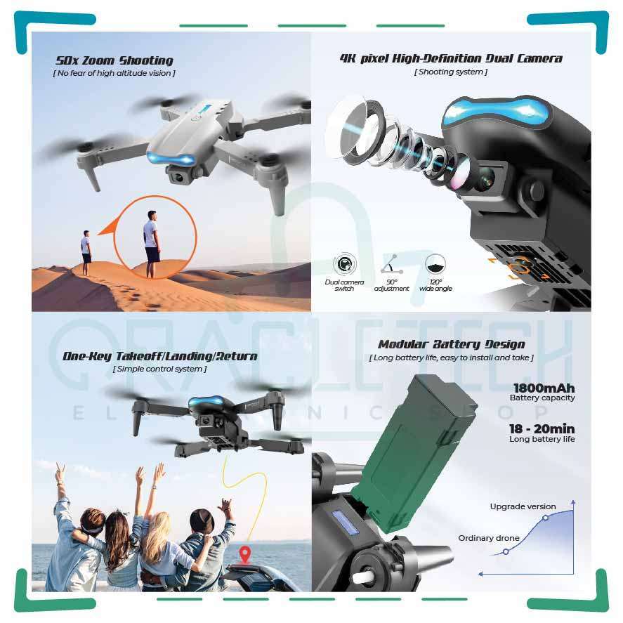 Drone E99pro Dual Camera Video Ultra HD Smart Baterai 1800mAH BERGARANSI