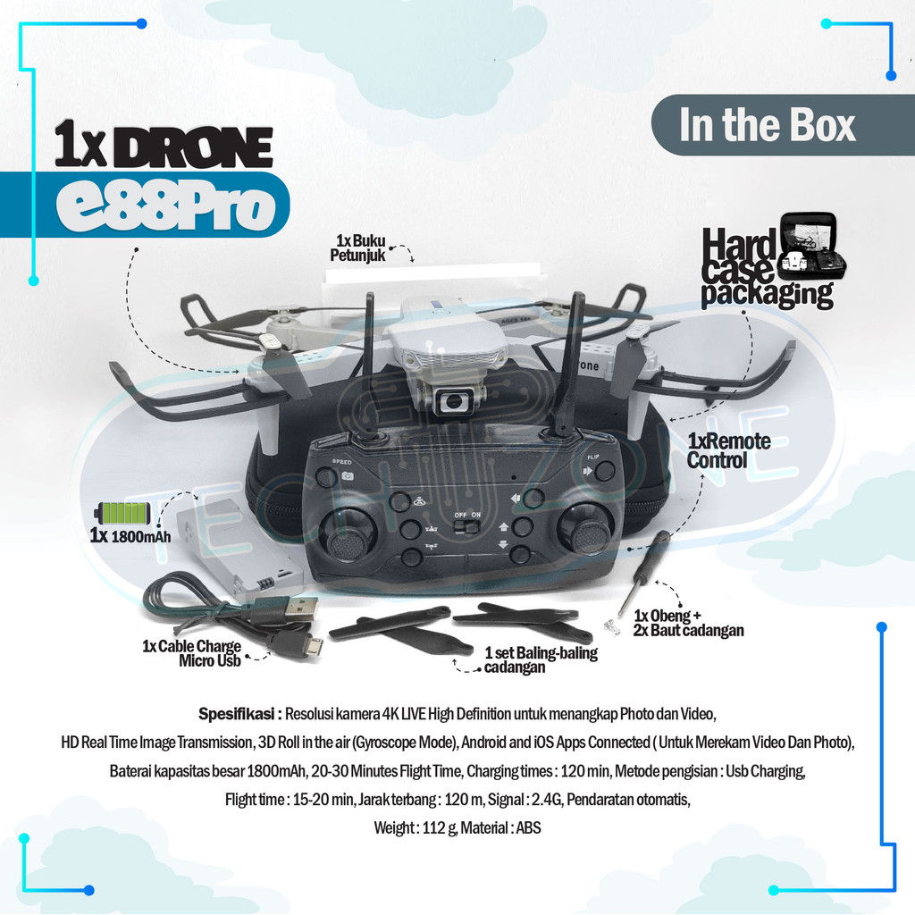 Drone E88pro 4K Ultra HD Foldable Drone Lipat Single Camera