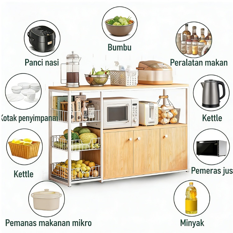 Rak Dapur Set 120x30x80cm Lemari Dapur Rak Oven Rak Microwave Kitchen Rack Rak Bumbu Rak Dapur Susun Minimalis