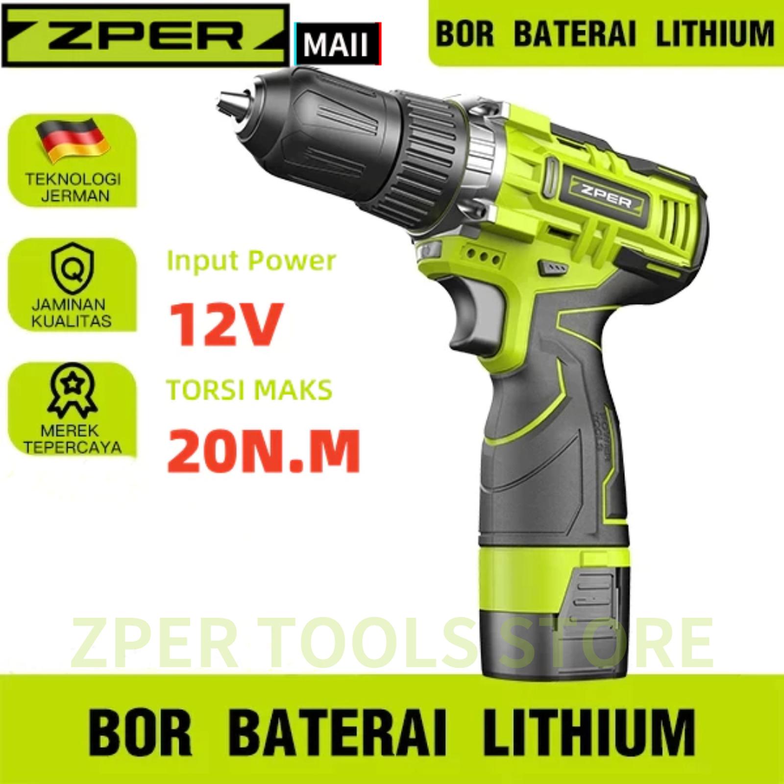 ZPER Mesin Bor Listrik Bor Baterai Cordless Cas Tangan Murah Berkualitas Bor Tanpa Kabel ZP011 - 12V Kardus 1Baterai