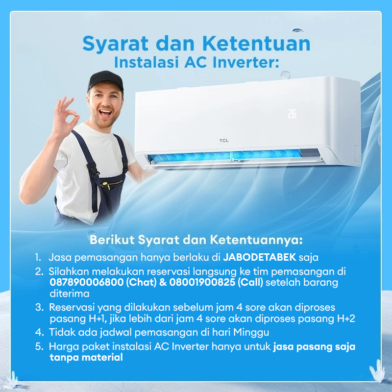 TCL AC Inverter 1PK - Tersedia Pemasangan - AI Tech Hemat Listrik 70 PERSEN - Anti Bising - Cepat Dingin - Turbo Cooling - Low Watt - Mini Full Set Baru - 1/2 0.5 PK (Model: TAC-09CSD/XAFI)