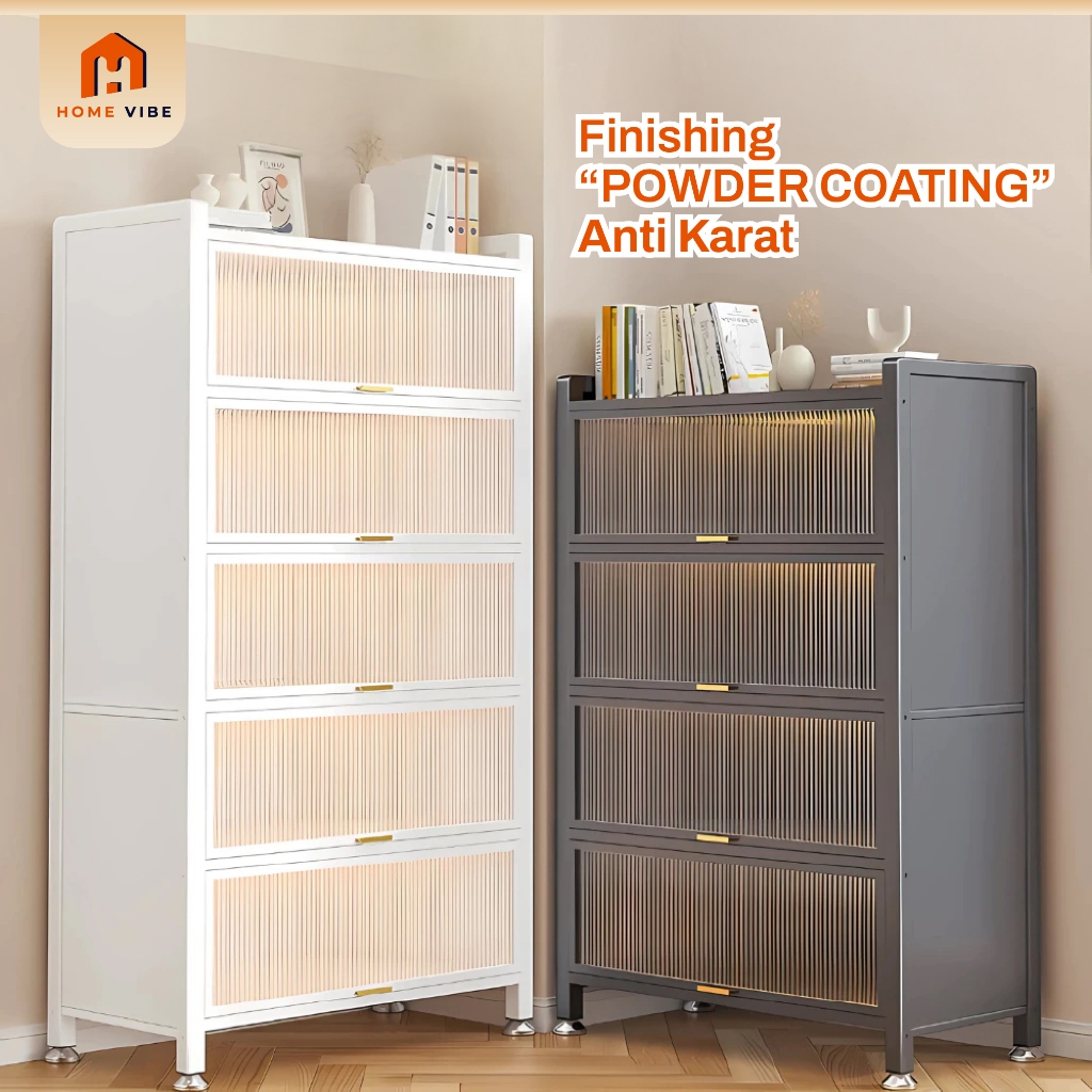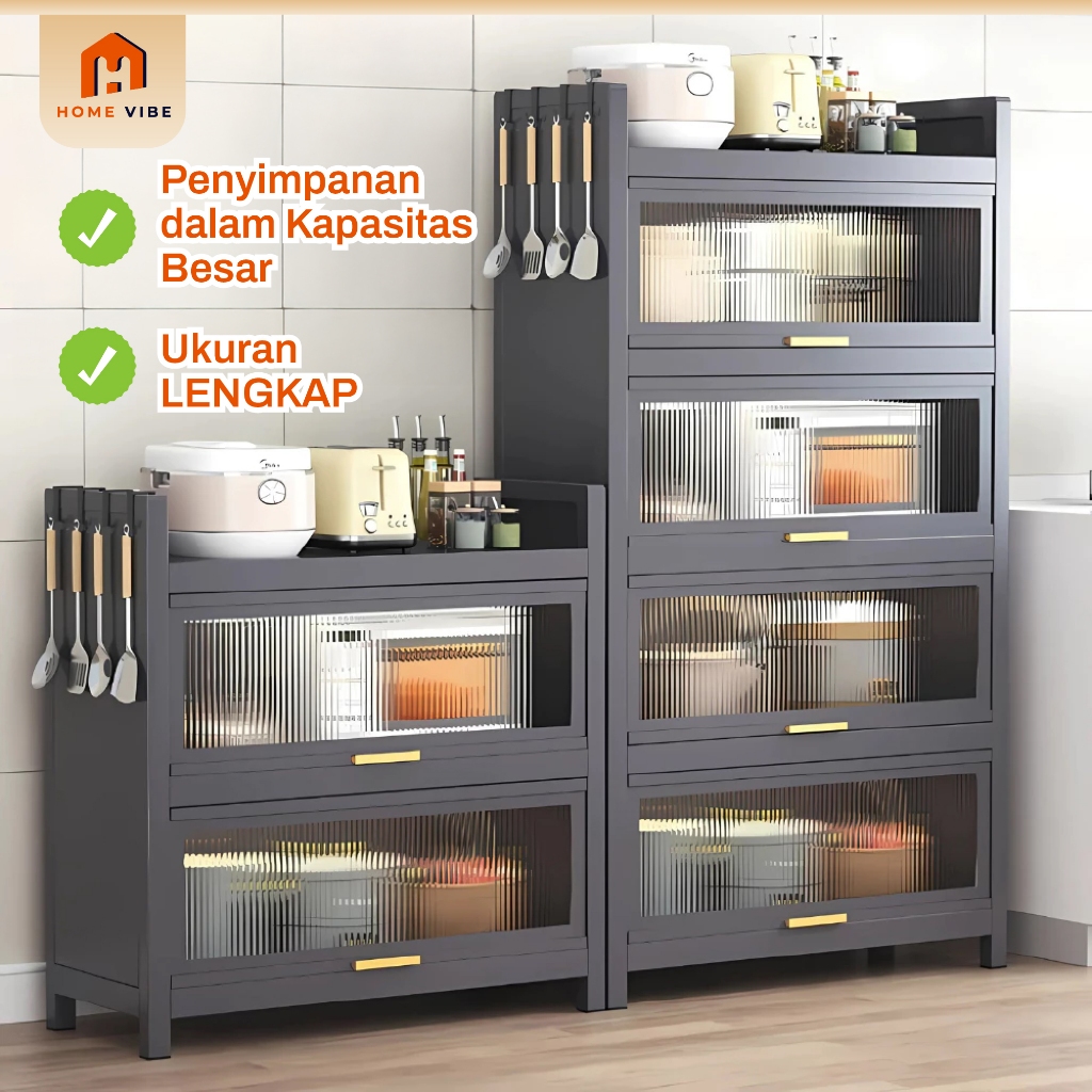 Rak Dapur Dengan Pintu Tertutup Full Besi Lemari Rak Piring Susun Rak Oven Microwave Minimalis