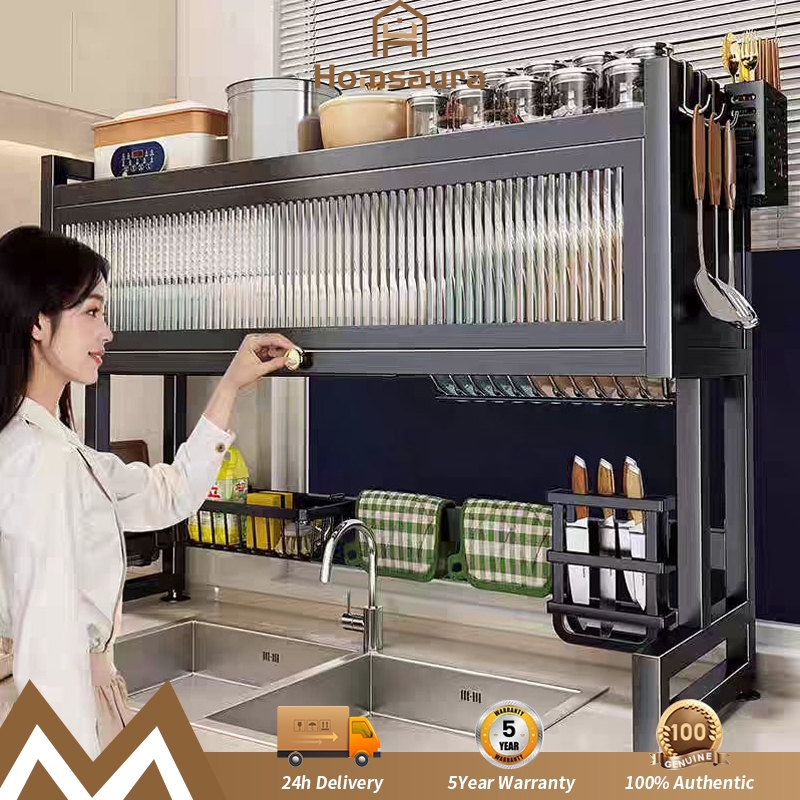 Homsaura Rak Piring Tertutup Rak Piring Wastafel Rak Dapur Multifungsi Dengan Aksesoris